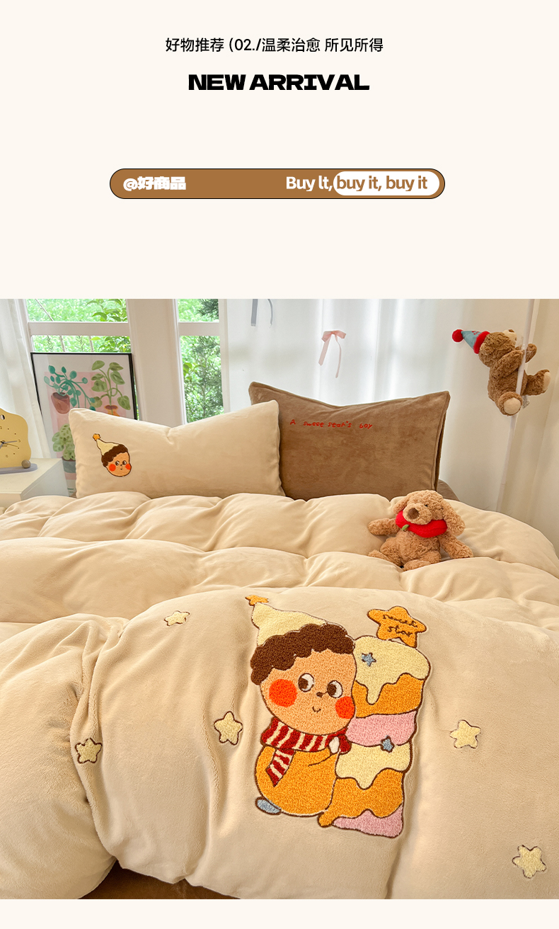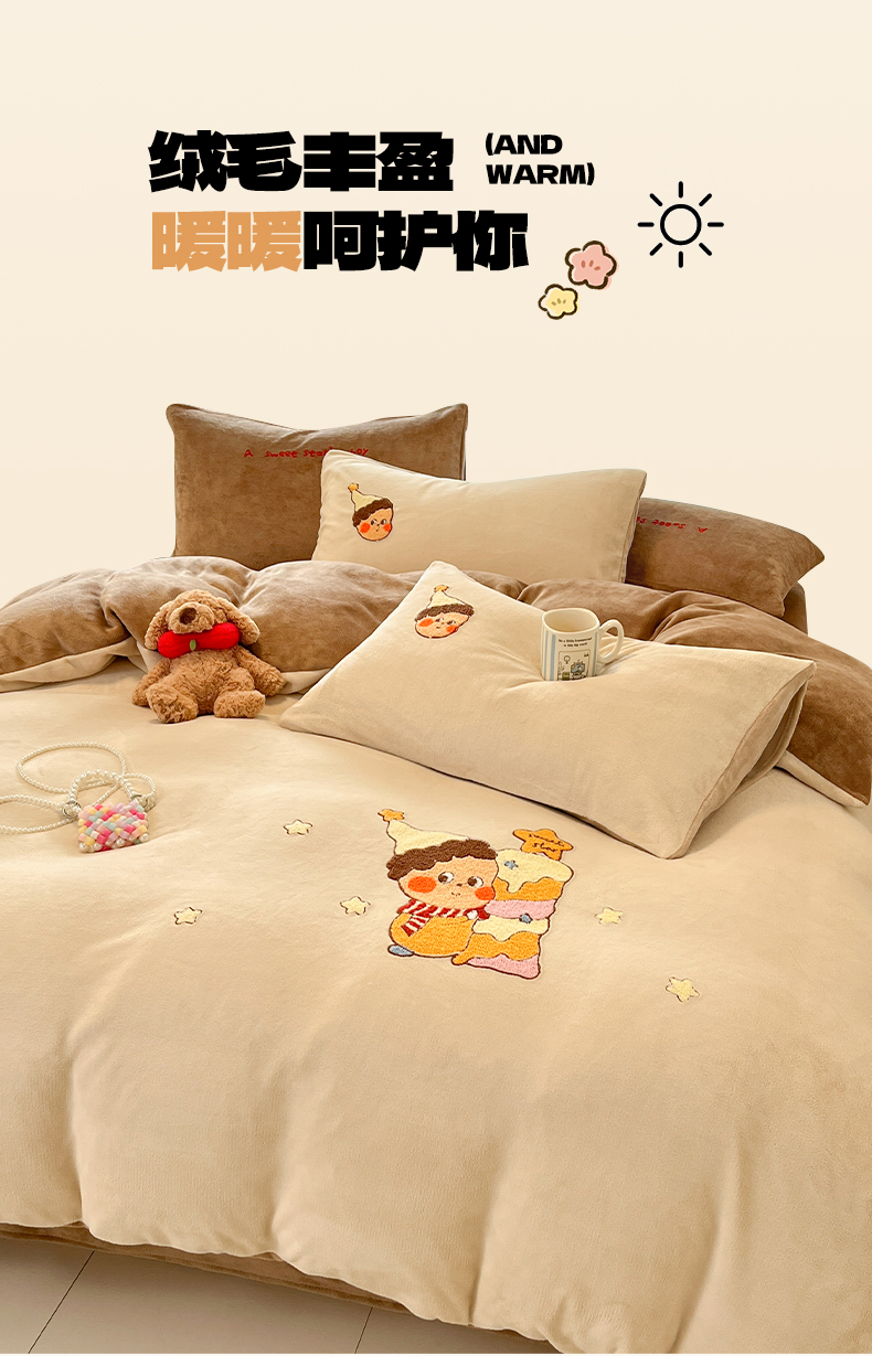 如一 2025新款卡通毛巾绣系列牛奶绒四件套第一批 星星派对