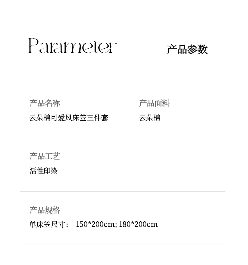 商品名称:漫仙阁家纺 2025新品云朵棉可爱风卡通烫画单床笠枕套三件套 花仙子
