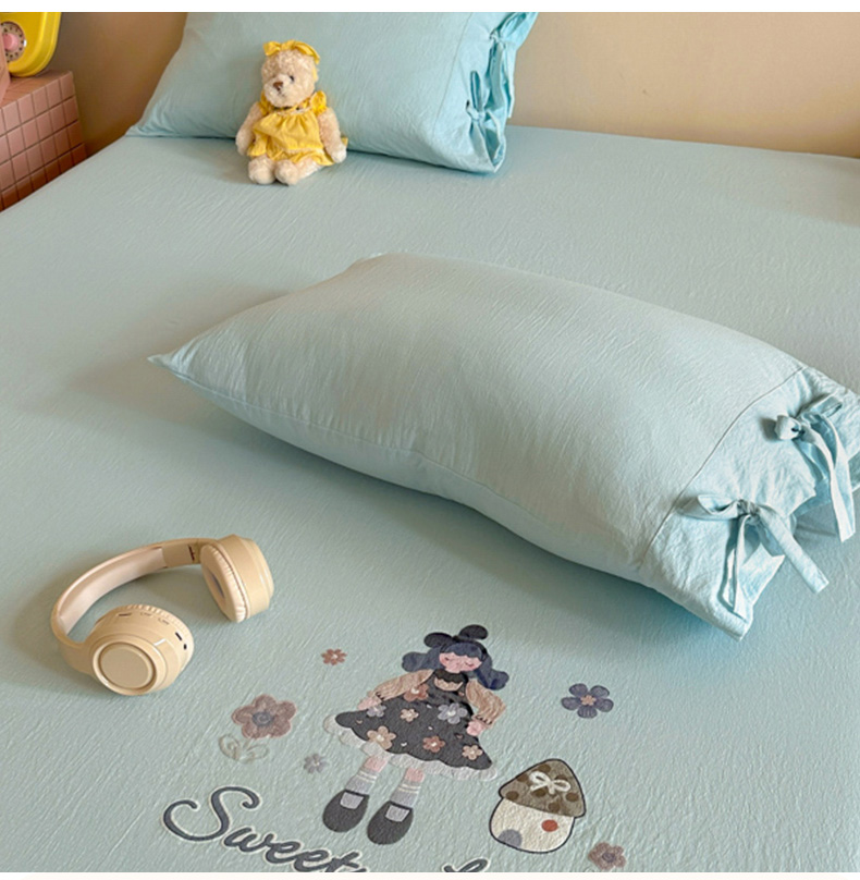 漫仙阁家纺 2025新品云朵棉可爱风卡通烫画单床笠枕套三件套 花仙子