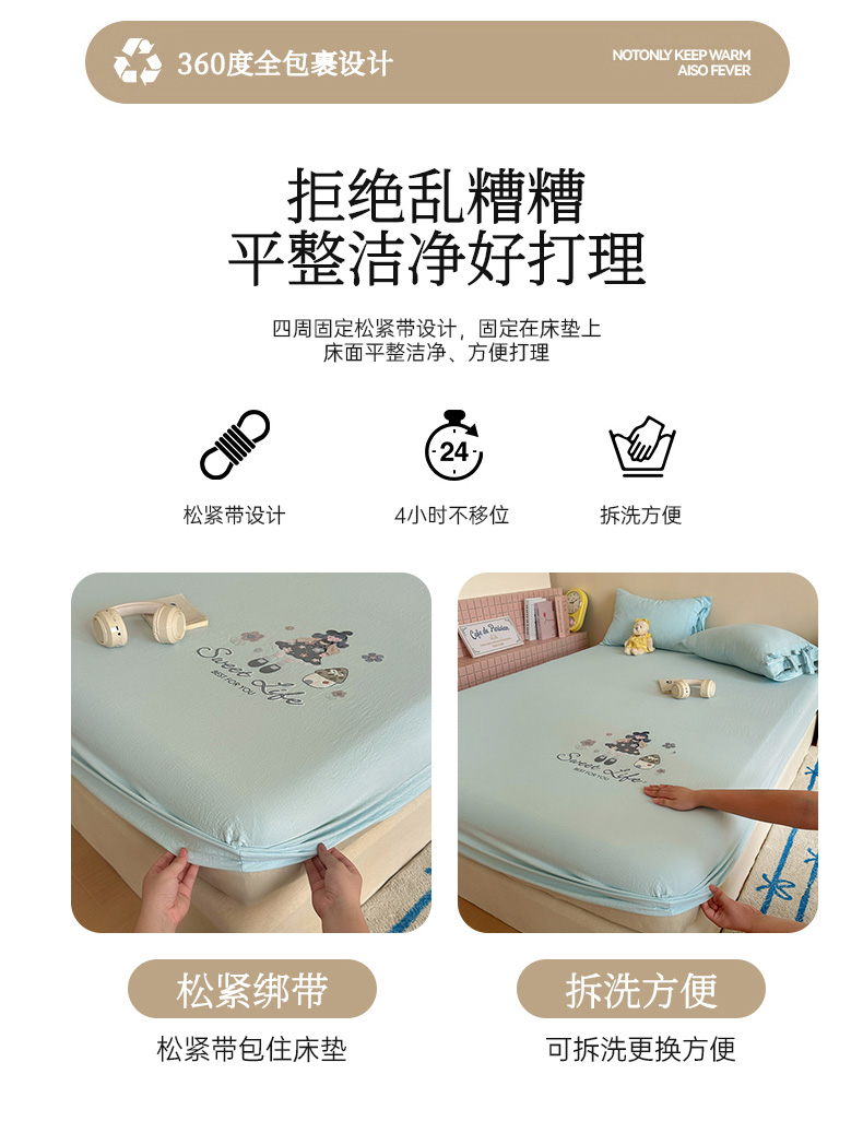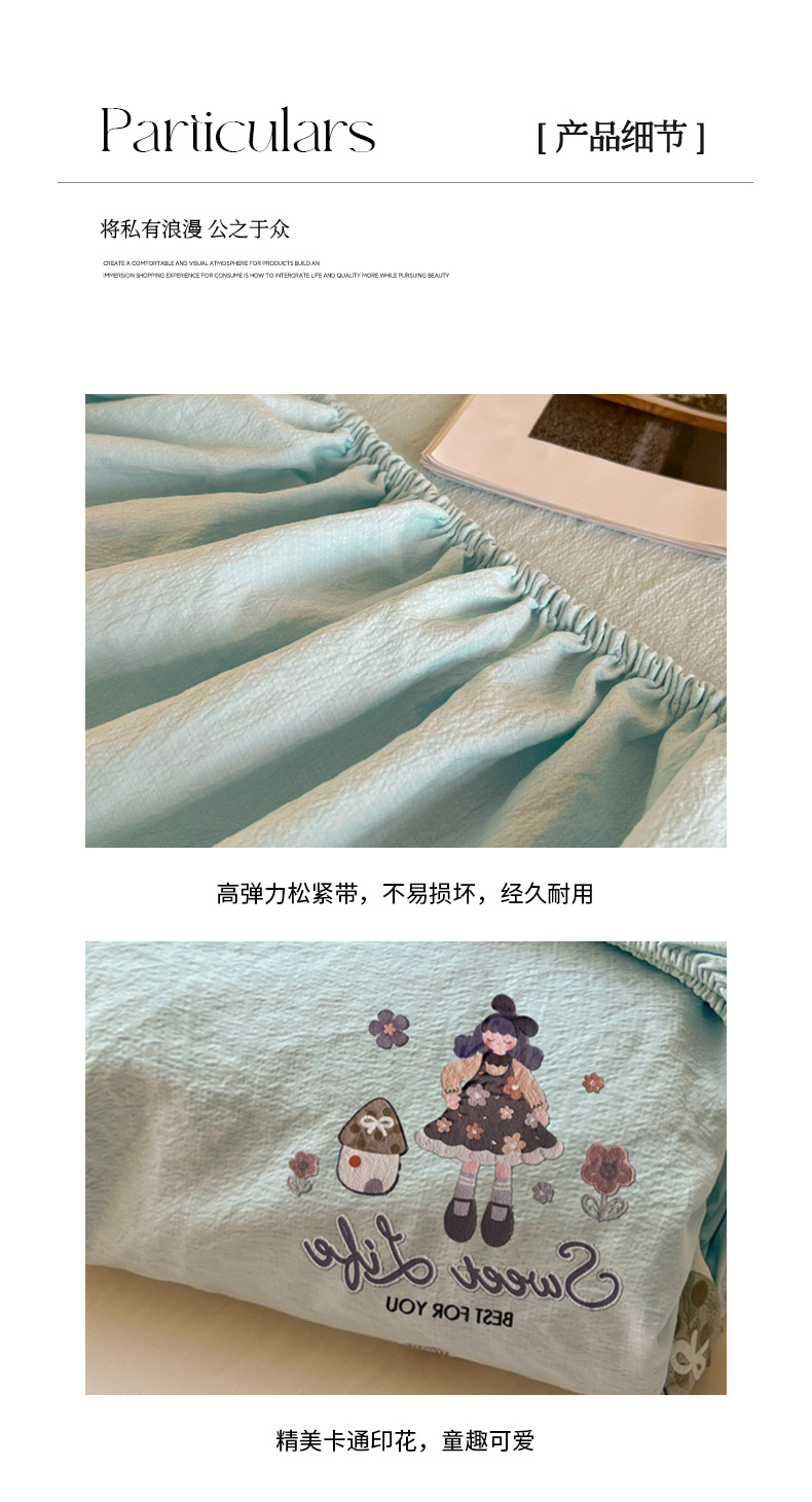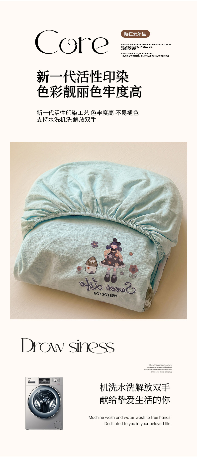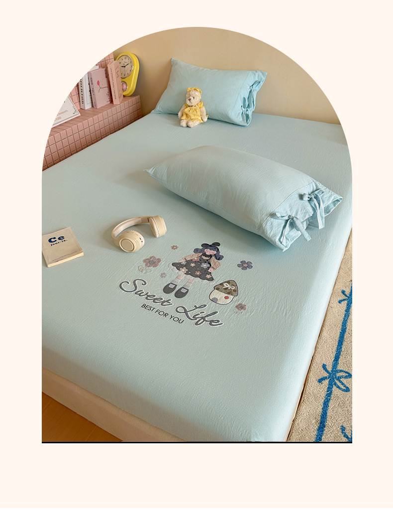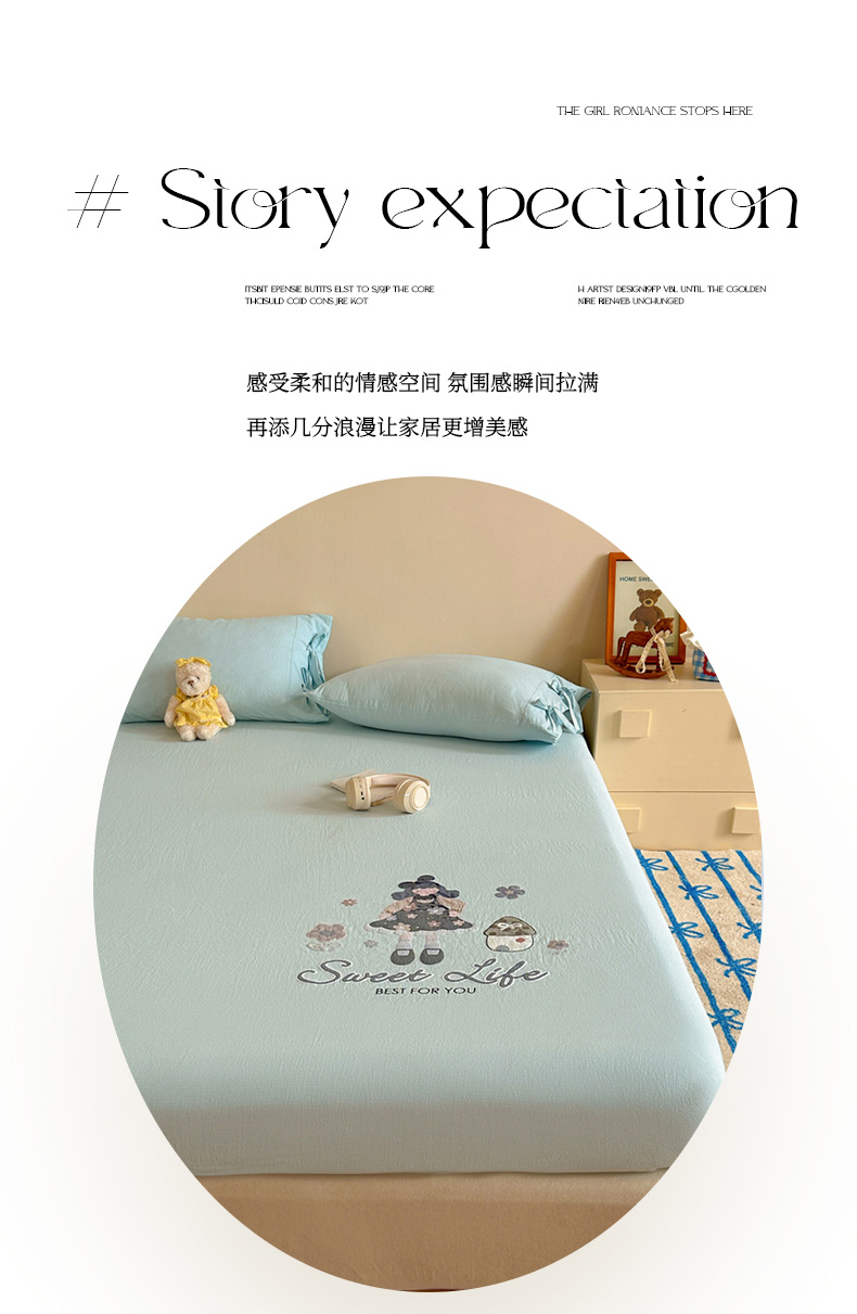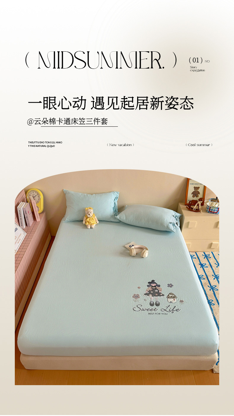 (总)漫仙阁家纺 2025新品云朵棉可爱风卡通烫画单床笠枕套三件套,小浣熊,邻家女孩,小青蛙,兔小姐,花仙子,狗狗家族
