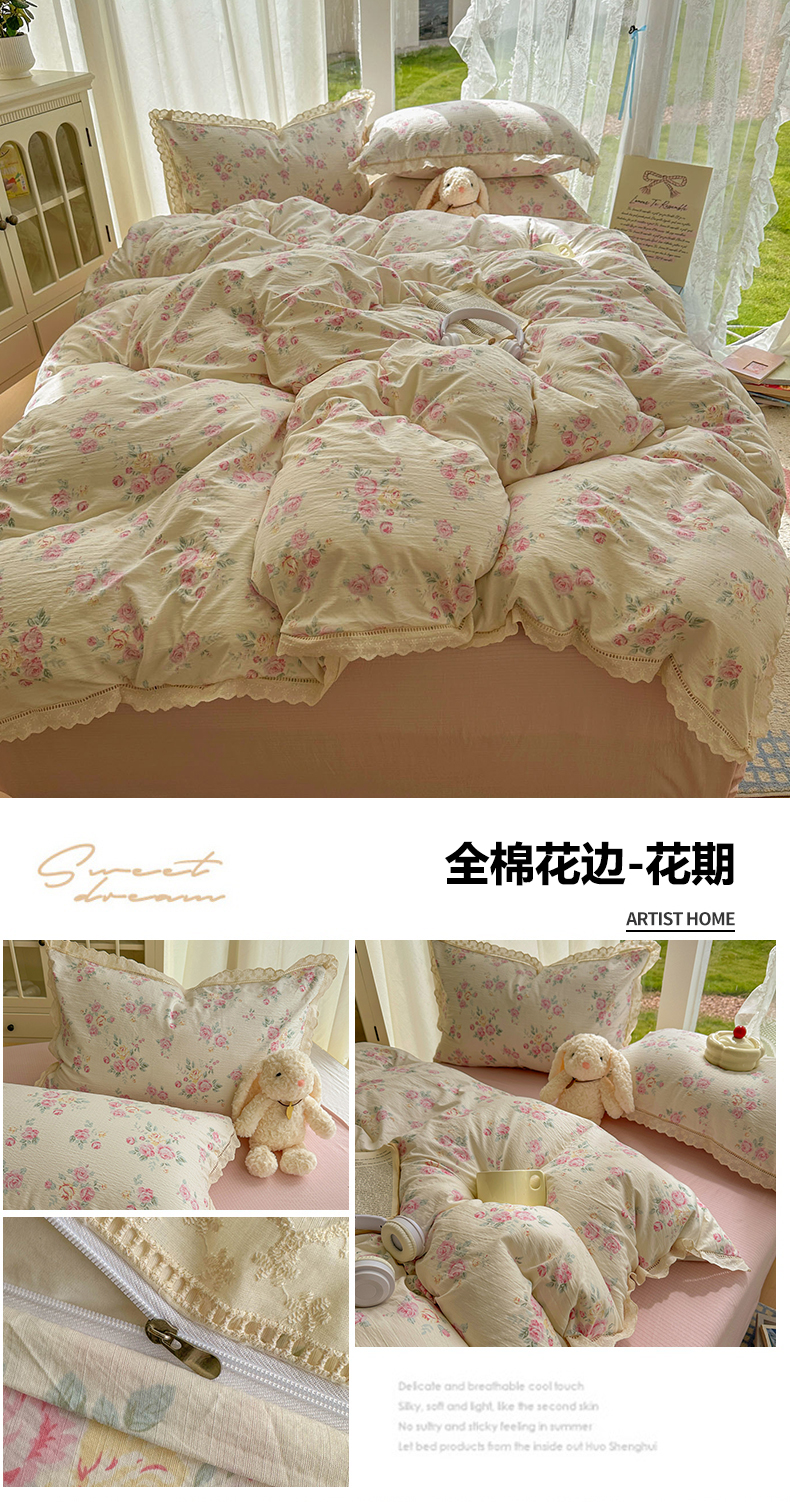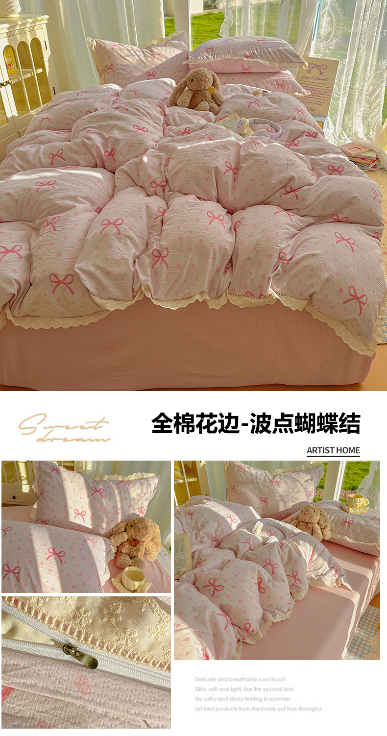 当前位置: 91家纺网 > 商品网购 > 床品套件 > 四件套 > 全棉普通四件套 > 颜选 2025新款全棉纯棉花边款四件套 全棉花边狗狗派对