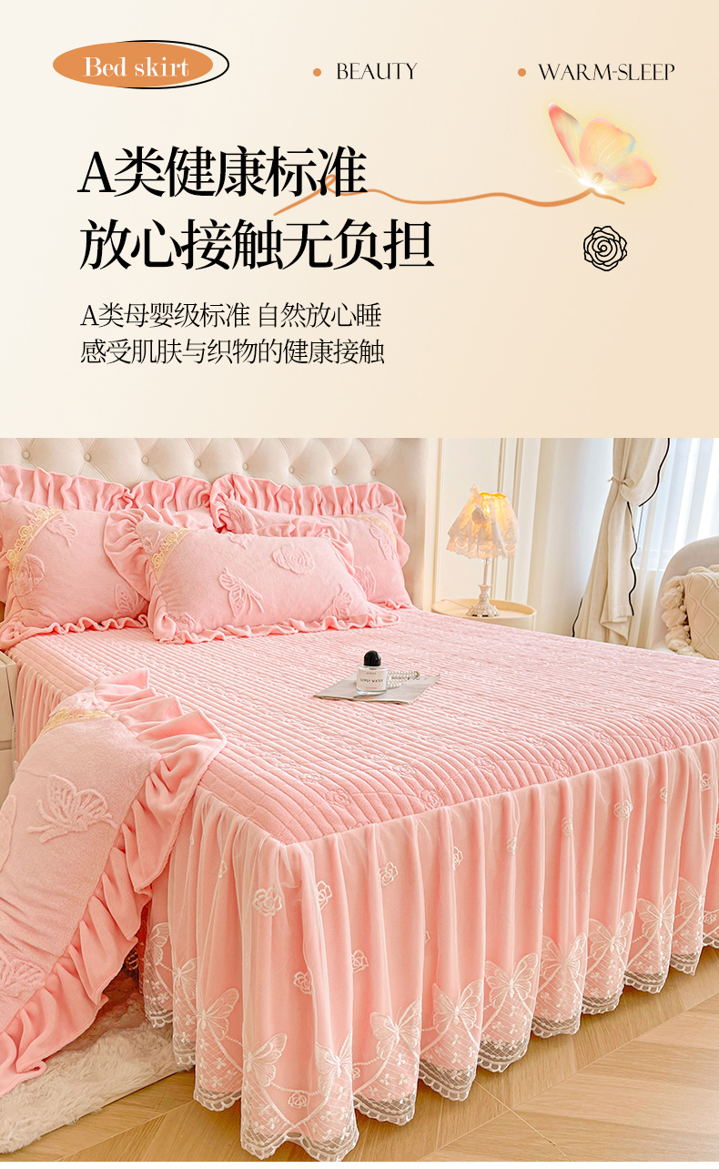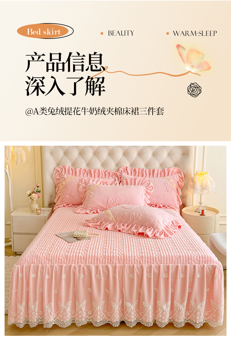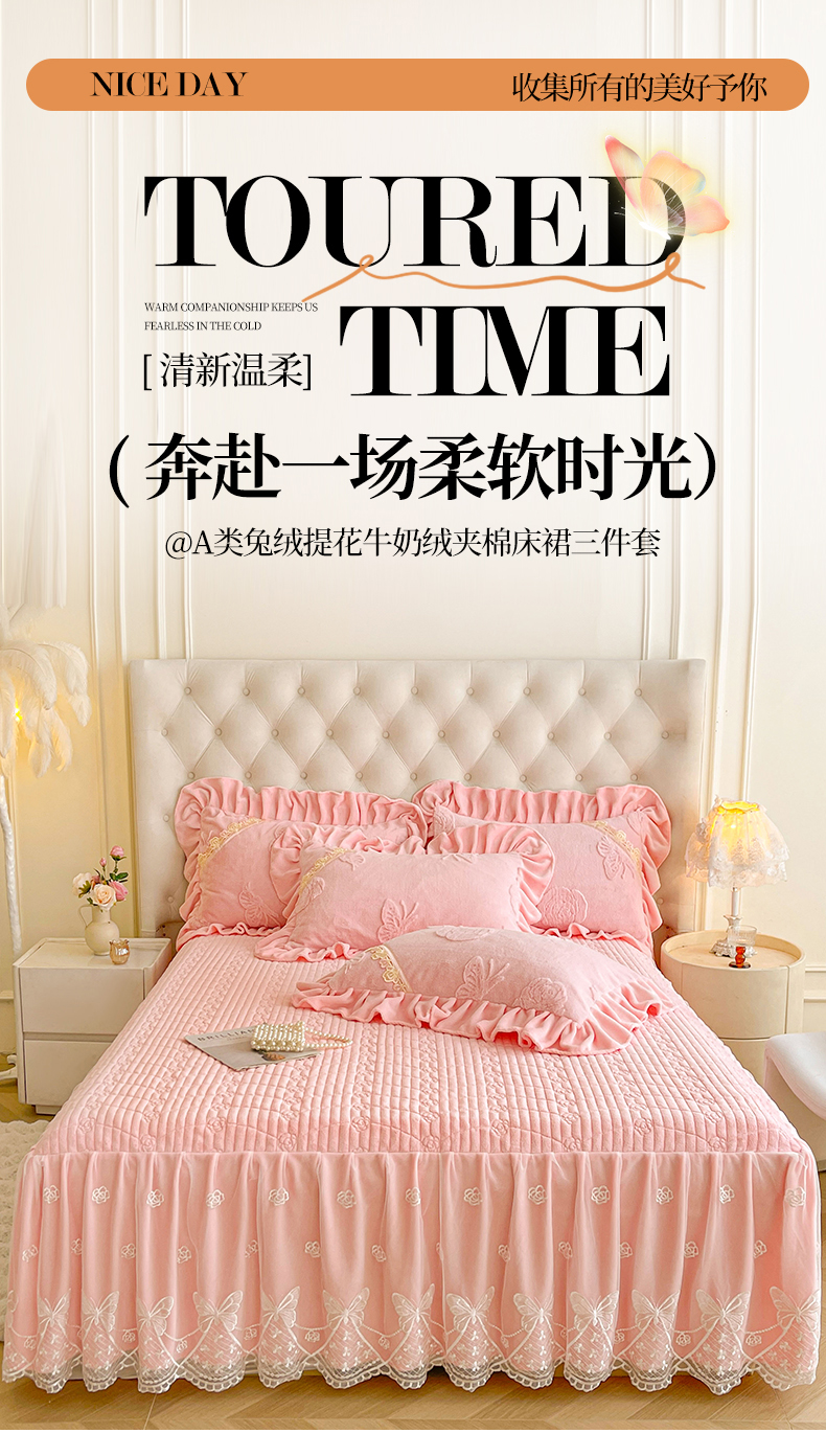 当前位置: 91家纺网 > 商品网购 > 床品套件 > 三件套 > 宜凡家纺 2025新款A类兔绒提花花边牛奶绒夹棉床裙三件套 万物生-淡雅紫