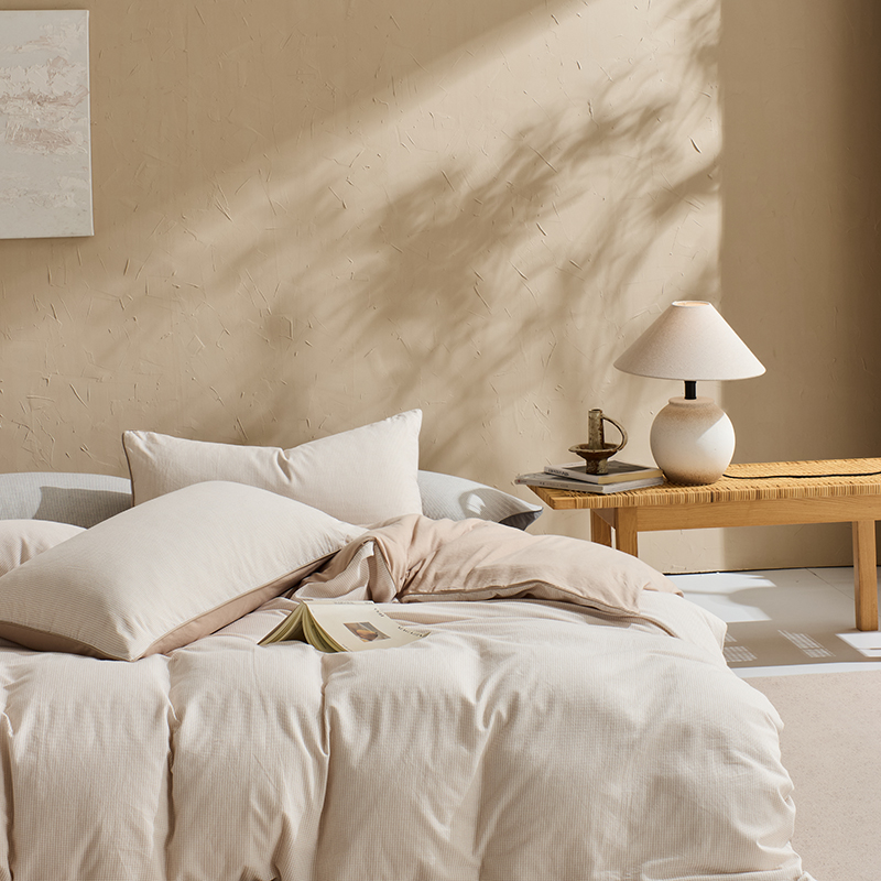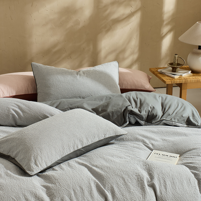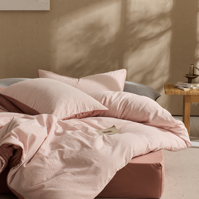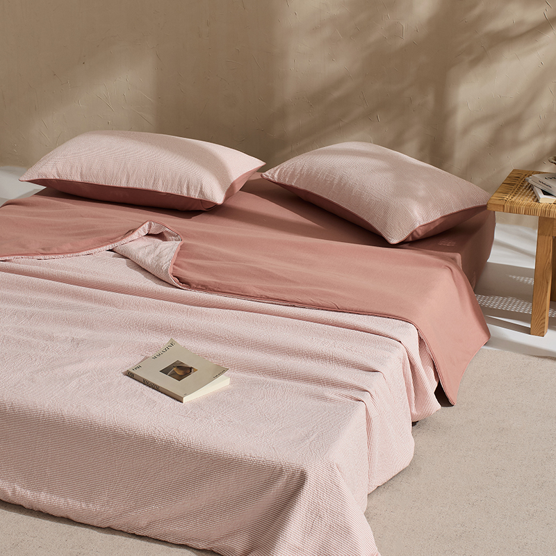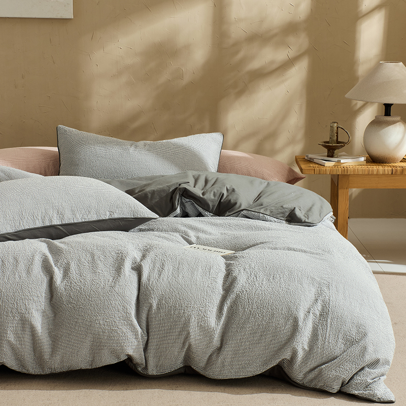 (总)LADYCOCO可可家居 2025新款三开口针织+梭织 夹棉四件套 优易套/U易套 三开口被套,唯一专利发明单位,全球专利布局,泡泡纱 条纹粉色,泡泡纱 条纹灰色,星羽皱 格子米色,星羽皱 格子灰色,双层纱 印花咖色,双层纱 印花米色