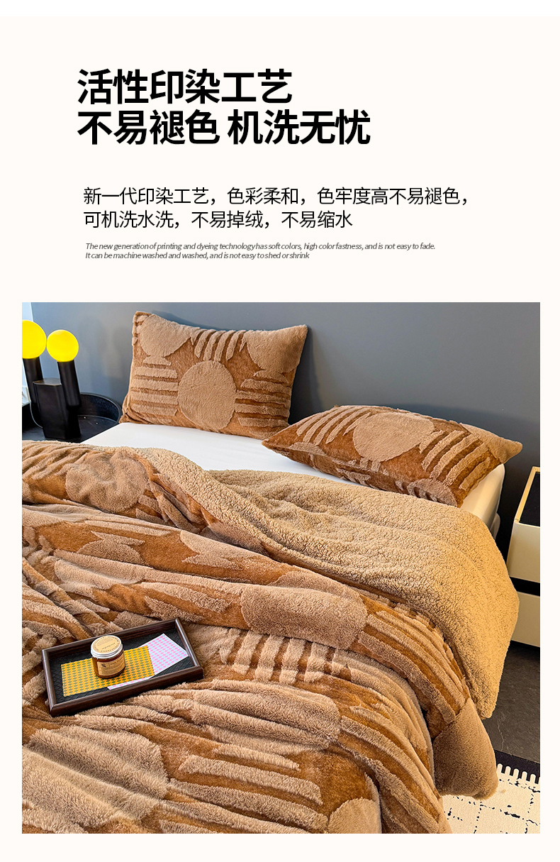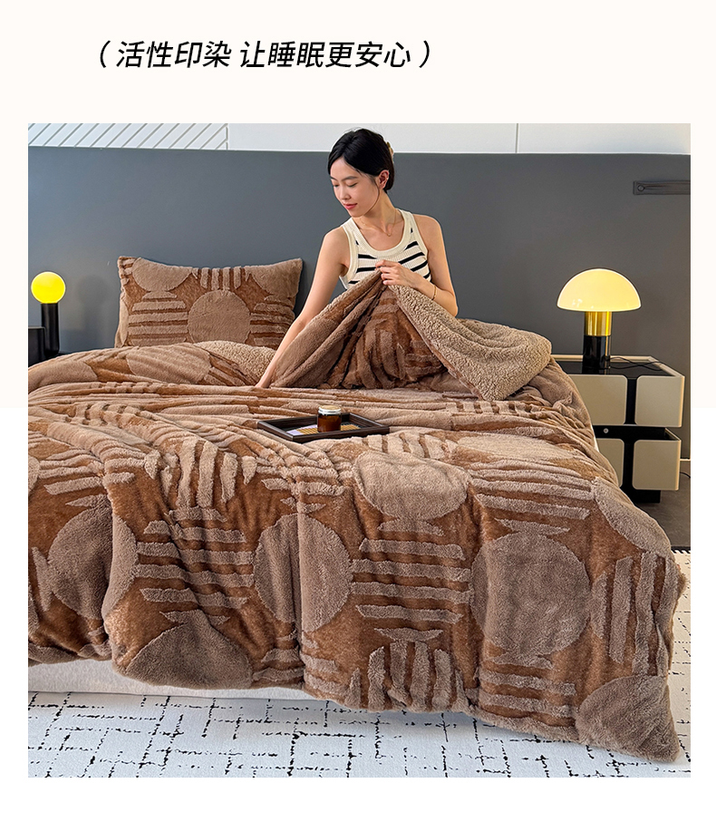 商品名称:枋梢家纺 2025新款亮丝兔毛绒兔毛提花北欧几何羊羔绒 双层加厚保暖盖毯 居家午睡保暖毯 几何-驼色