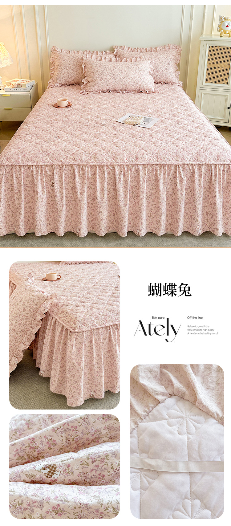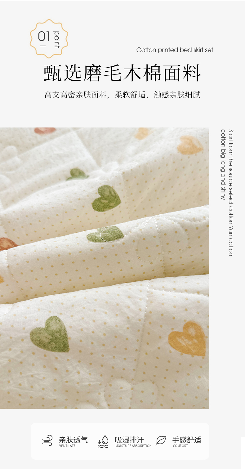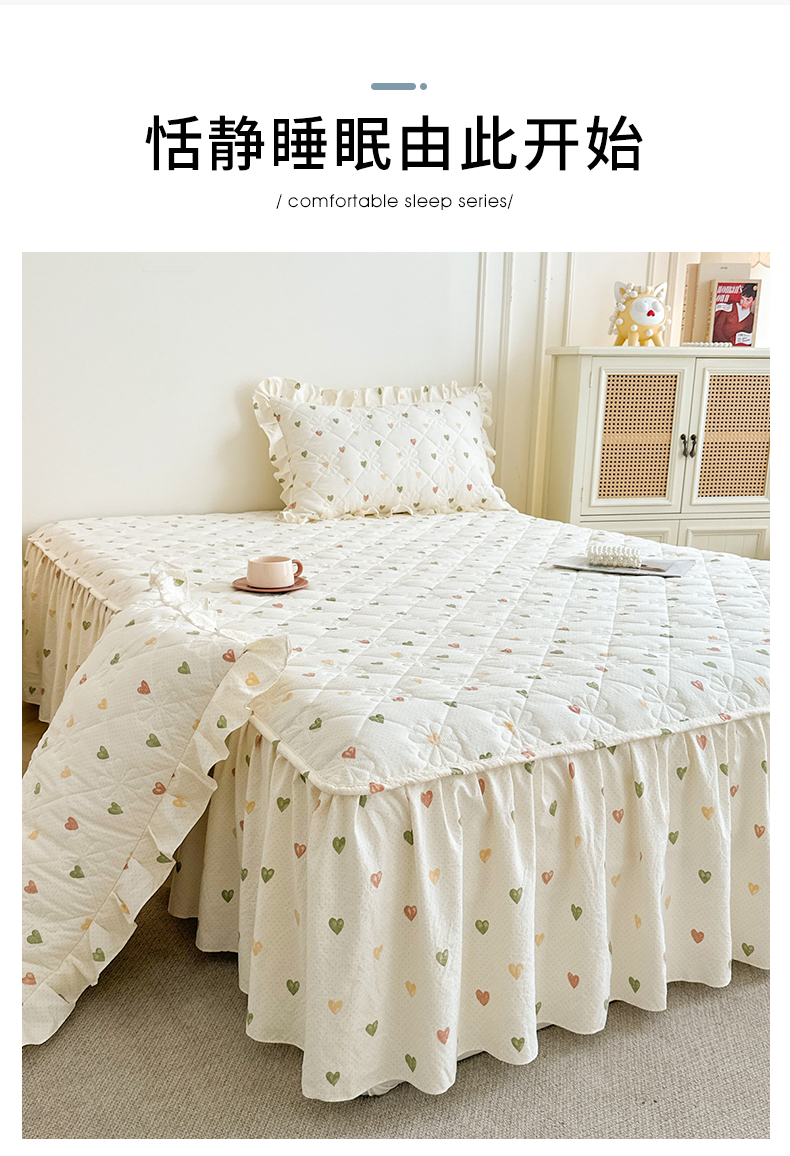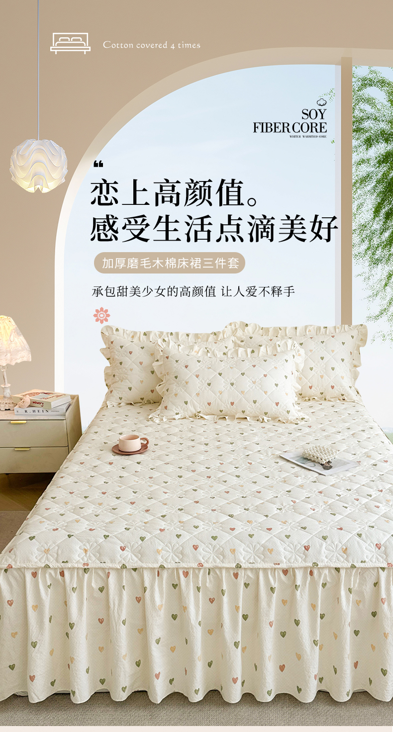 (总)十个点家纺 2025新款加厚磨毛木棉床裙三件套-绫罗系列,爱意萌萌,贝贝熊,格桑花,海棠花,蝴蝶兔,花千骨,米兰,木棉花,山茶花,同心结,心相印,心愿-米