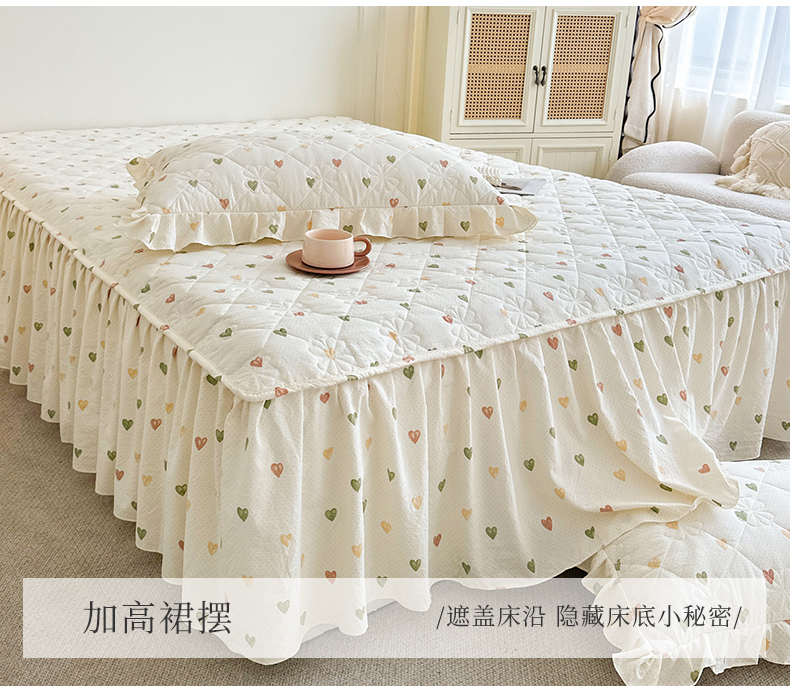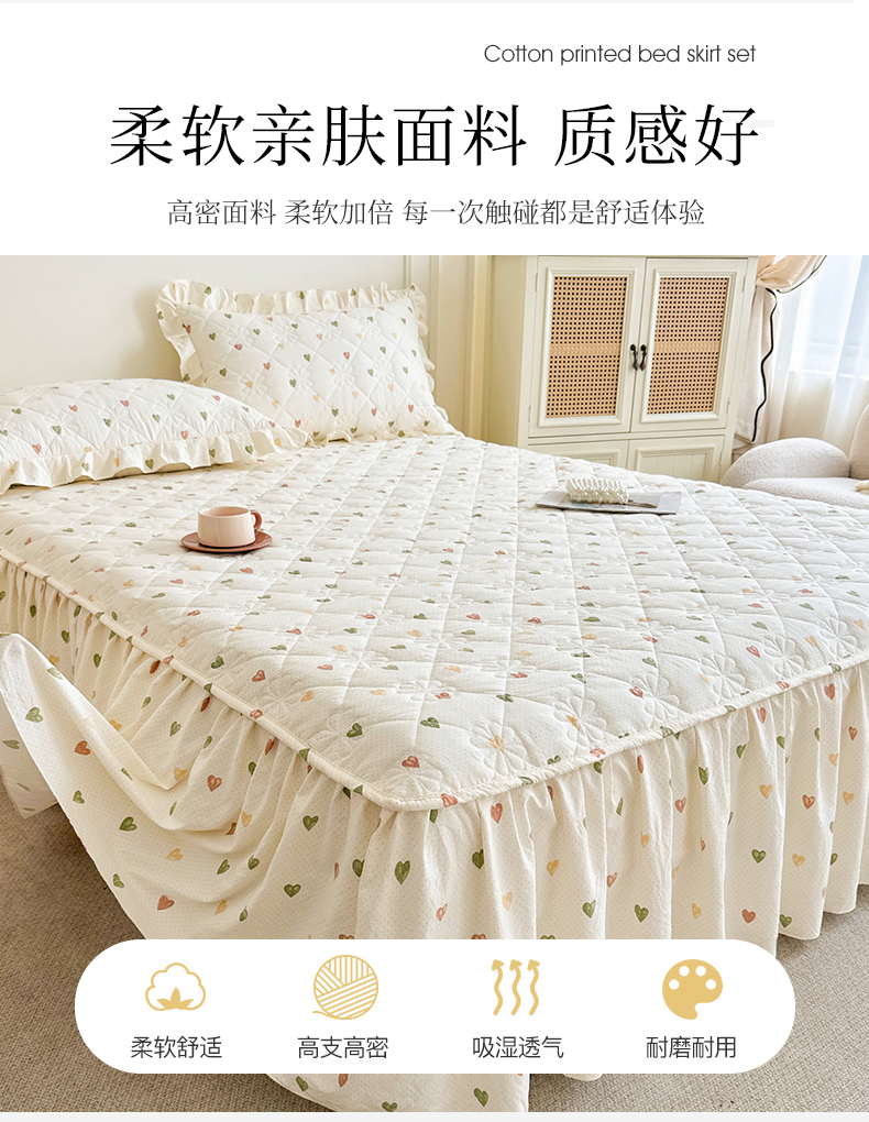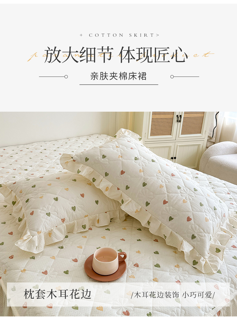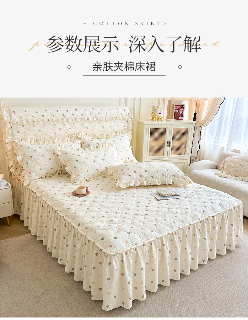 商品名称:十个点家纺 2025新款加厚磨毛木棉床裙三件套-绫罗系列 心愿-米