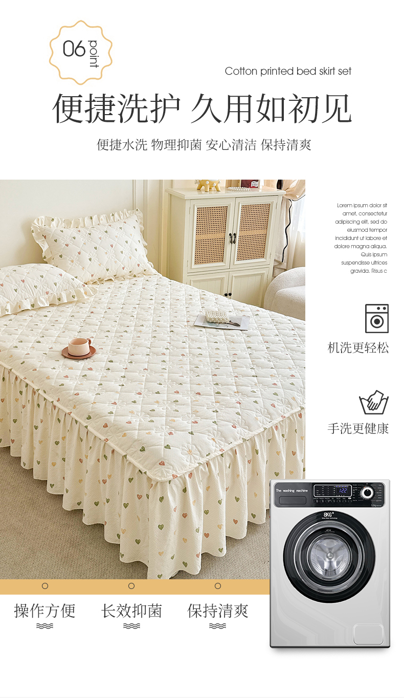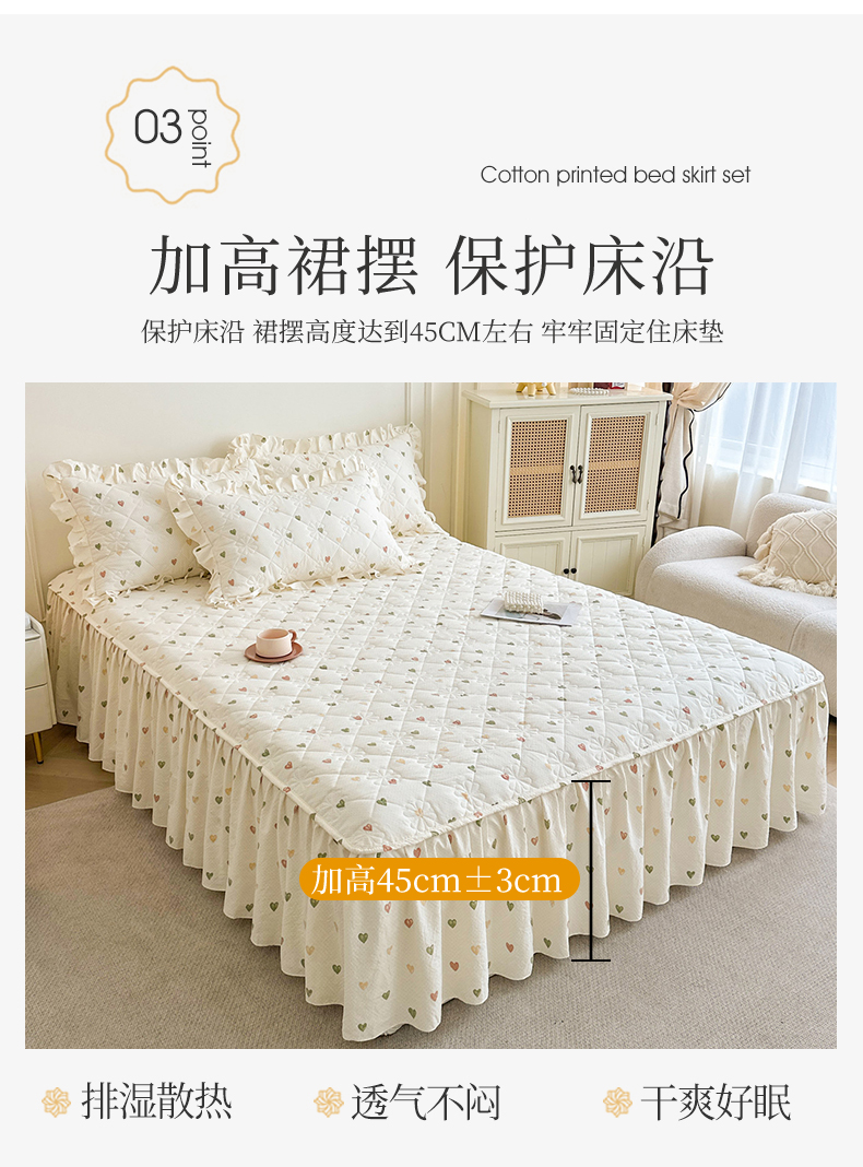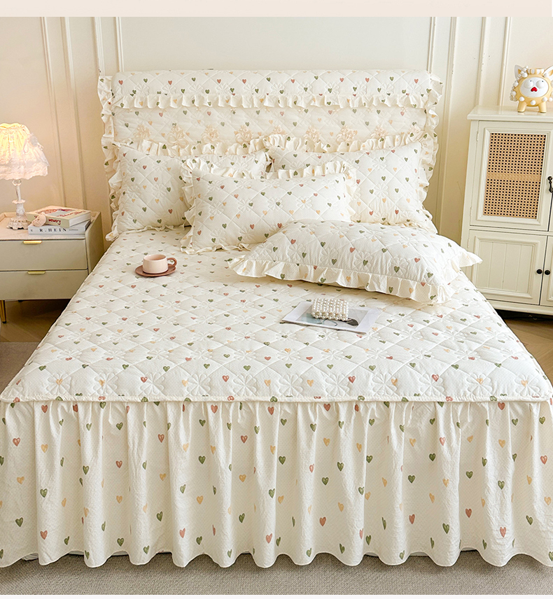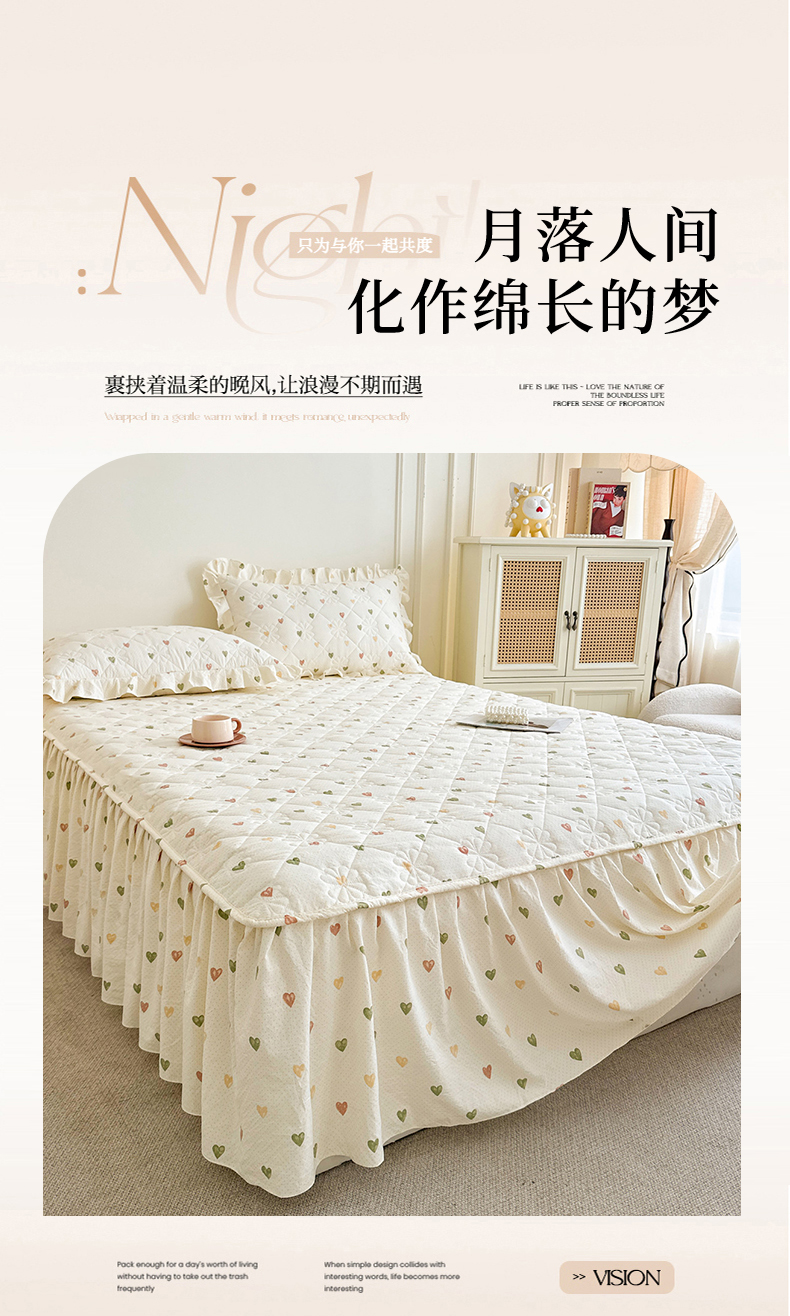 商品名称:十个点家纺 2025新款加厚磨毛木棉床裙三件套-绫罗系列 心愿-米
