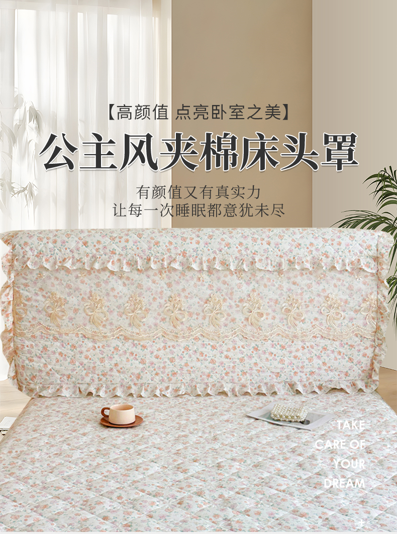 (总)十个点家纺 2025新款公主风夹棉床头罩-绫罗系列,爱意萌萌,贝贝熊,格桑花,海棠花,蝴蝶兔,花千骨,米兰,木棉花,山茶花,同心结,心相印,心愿-米