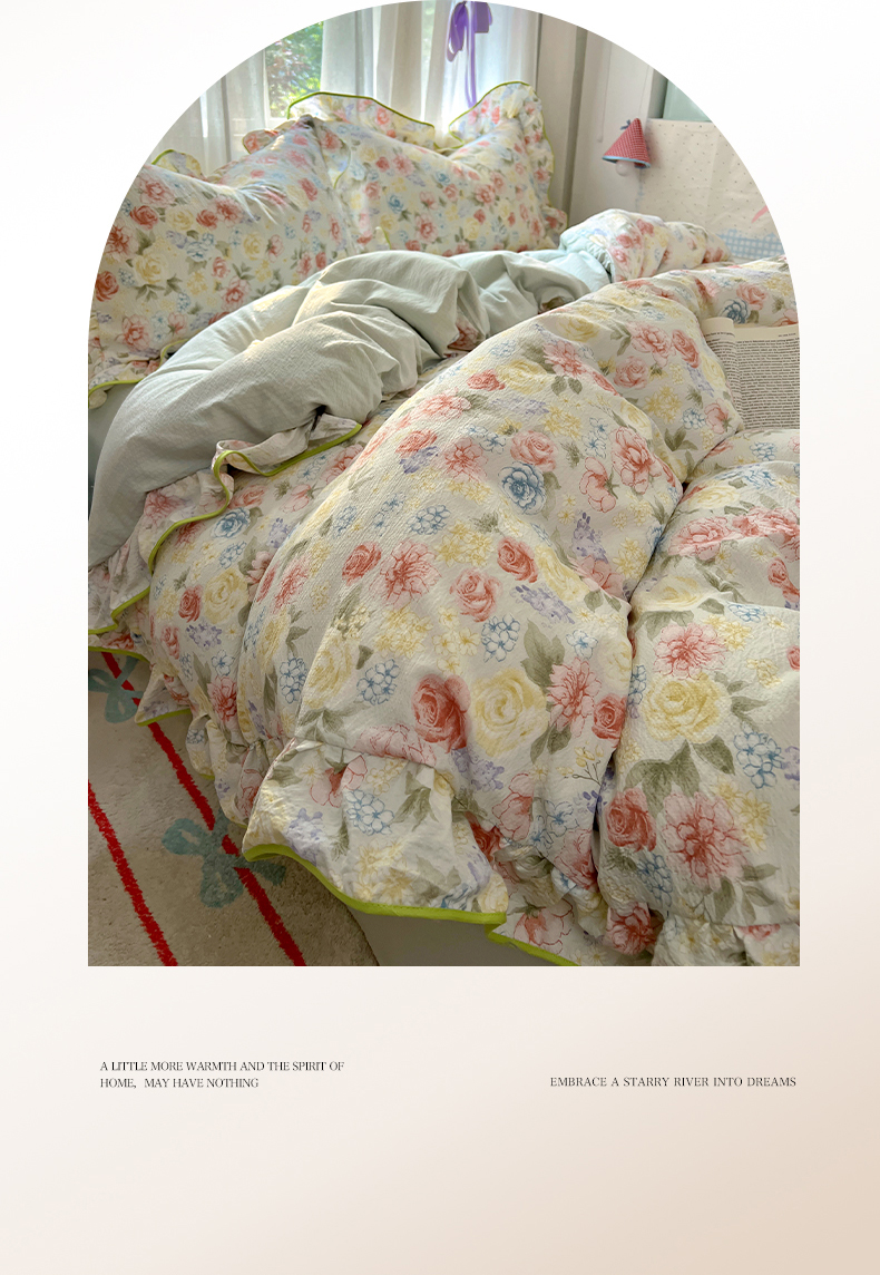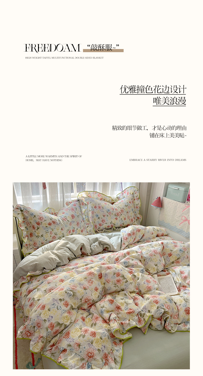 当前位置: 91家纺网 > 商品网购 > 床品套件 > 四件套 > 其它四件套 > 春光里 2025新款亲肤舒适云感双层纱花边四件套 风格二(提供买家秀) 澜花
