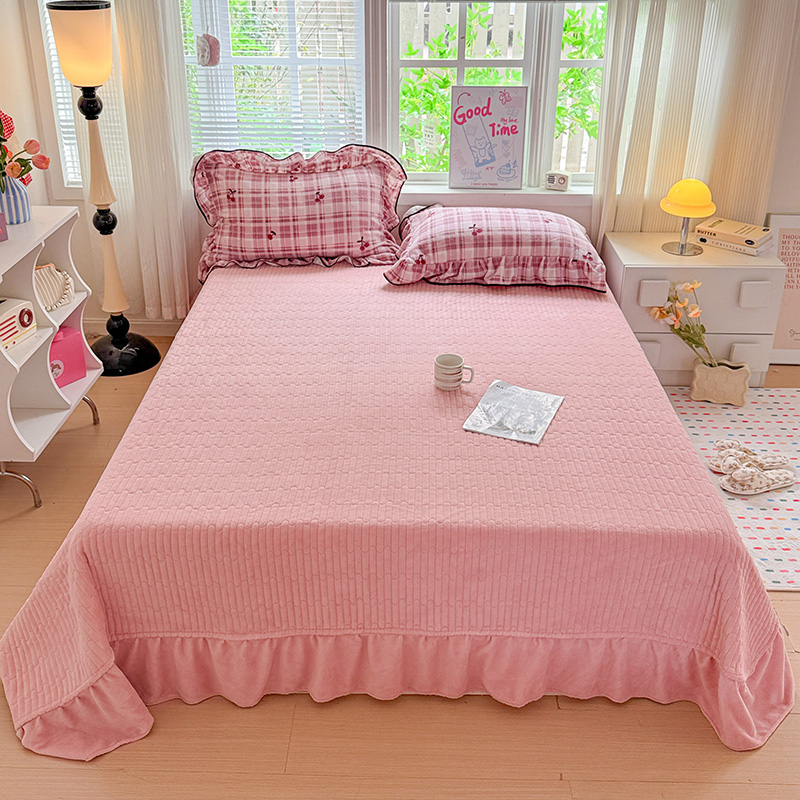 (总)梦莱斯2025新款皱皱棉学生款床盖三件套,波点粉,波点黄,波点咖,波点蓝,波点紫,法式少女,花海绿,简夕米,蓝格子,罗格先生咖,罗格先生蓝,迷你格灰,迷你格米,珊瑚海粉,水墨嫣然,往事黄,往事咖,至尚