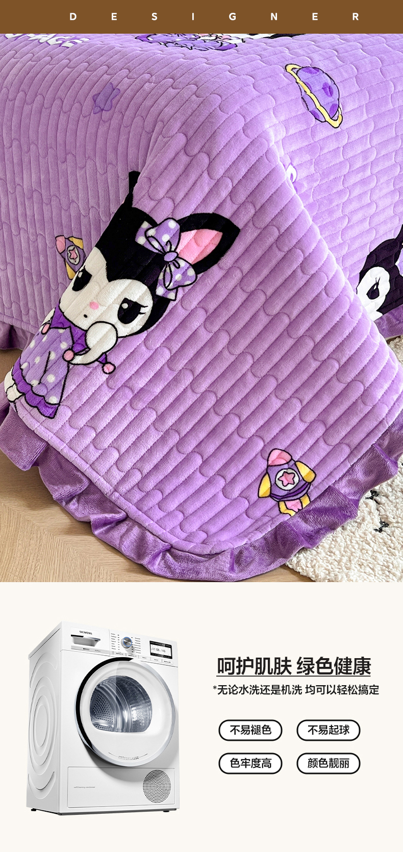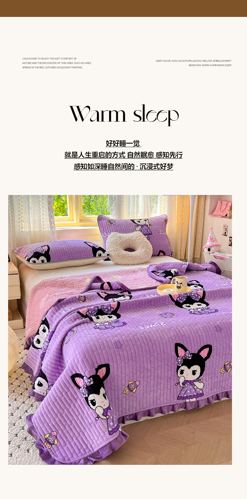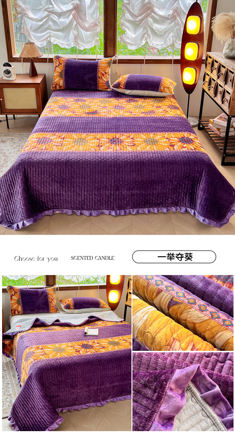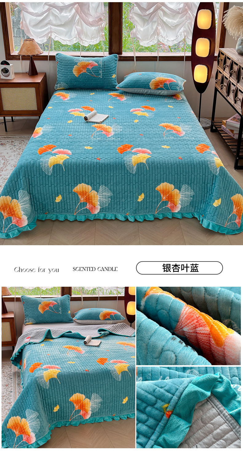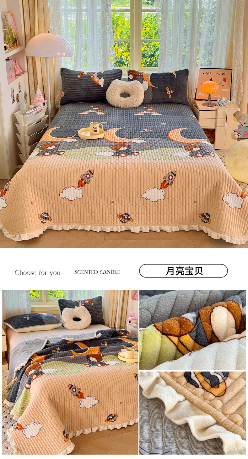 商品名称:梵克保罗 2025新款A类牛奶绒夹棉花边韩版印花床盖三件套加厚保暖多功能单床盖 甜心樱桃