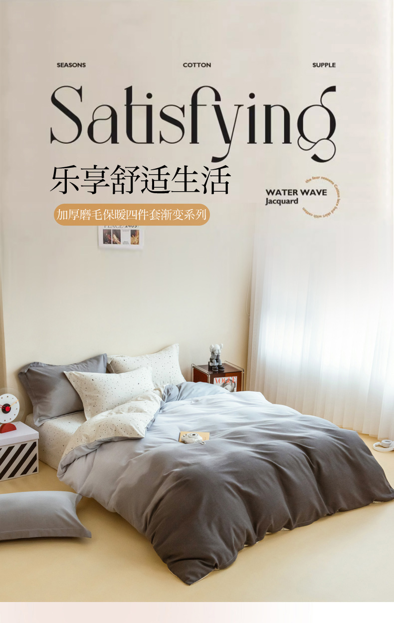 当前位置: 91家纺网 > 商品网购 > 床品套件 > 四件套 > 全棉普通四件套 > 印季家纺 2025新款全棉纯棉加厚渐变混纺磨毛四件套-过江寒 过江寒-灰