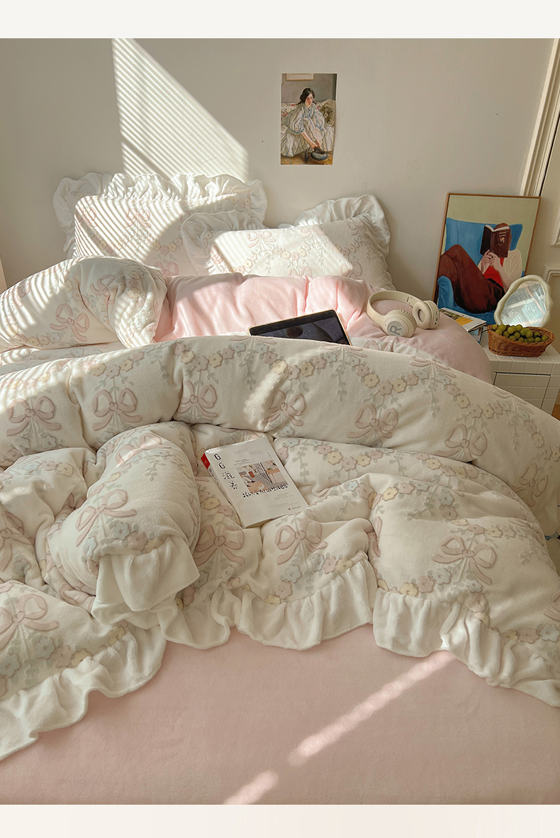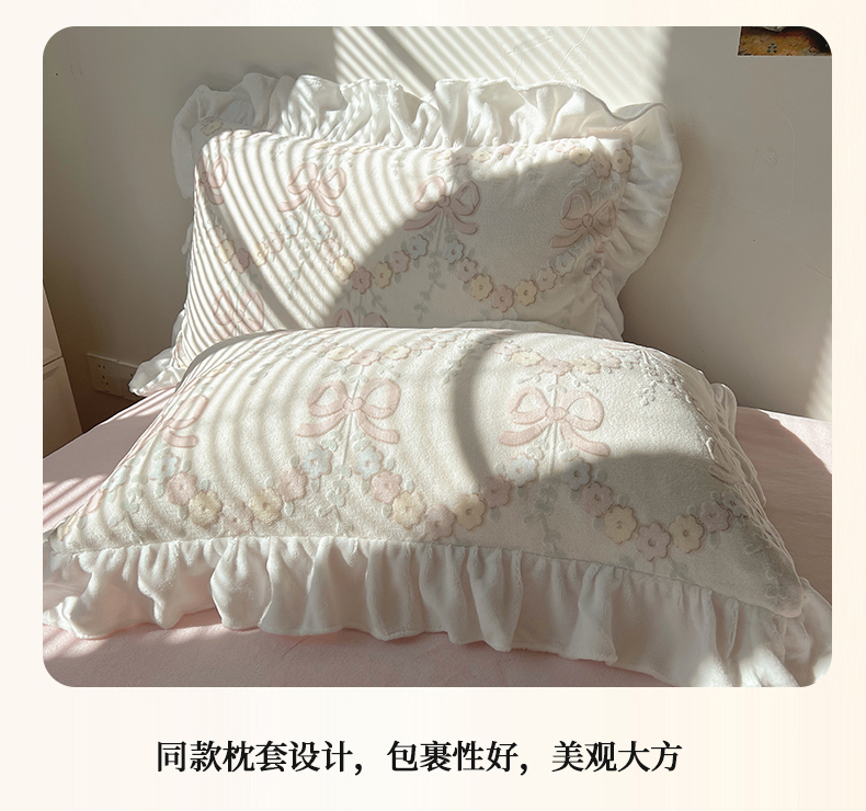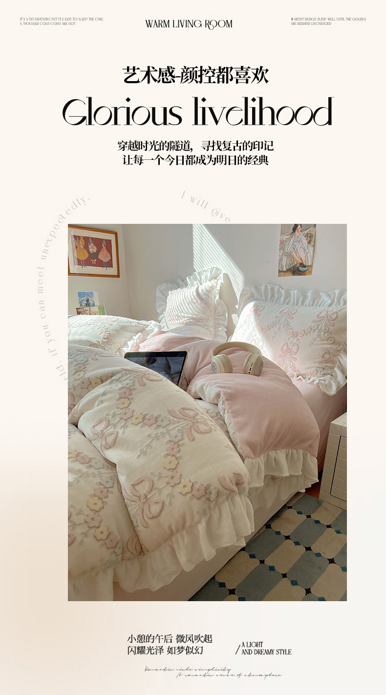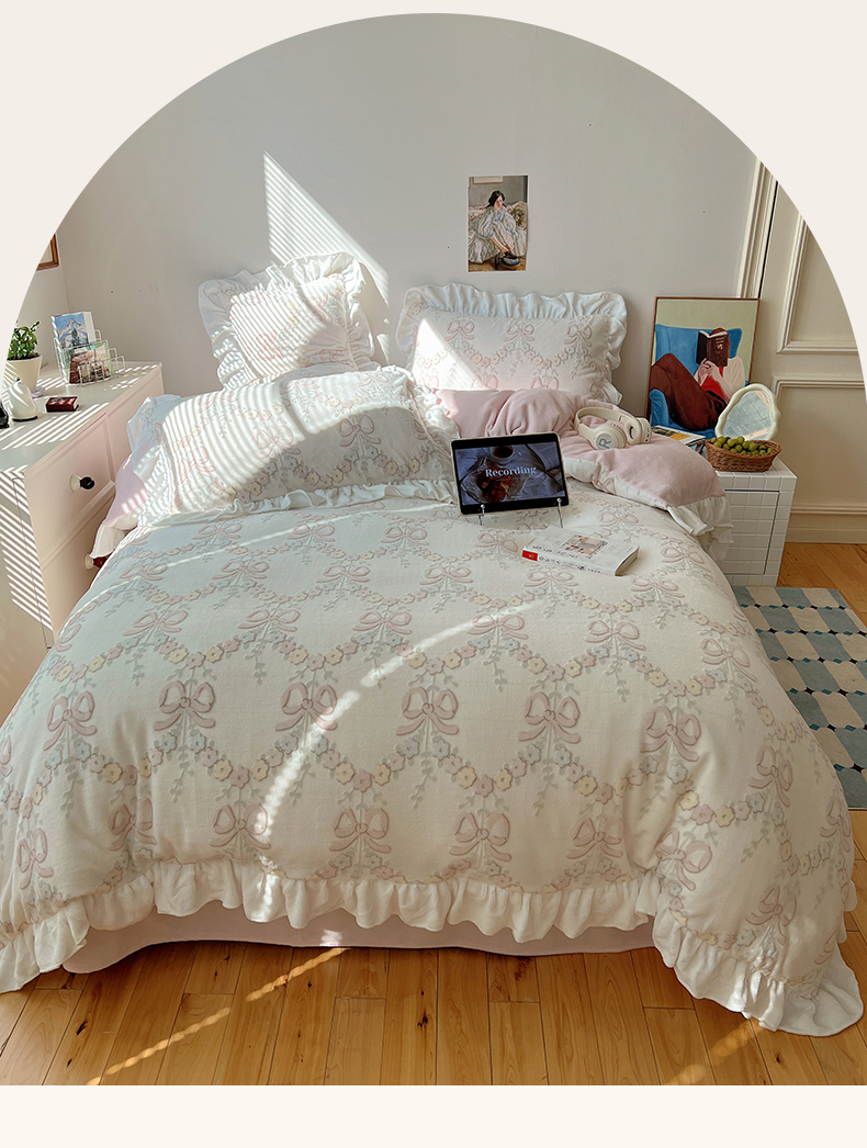 当前位置: 91家纺网 > 商品网购 > 床品套件 > 四件套 > 牛奶绒四件套 > 六巷胡同 2025新款韩系小清新博主风着色立体雕花A类牛奶绒四件套 花边款-星野漫溯