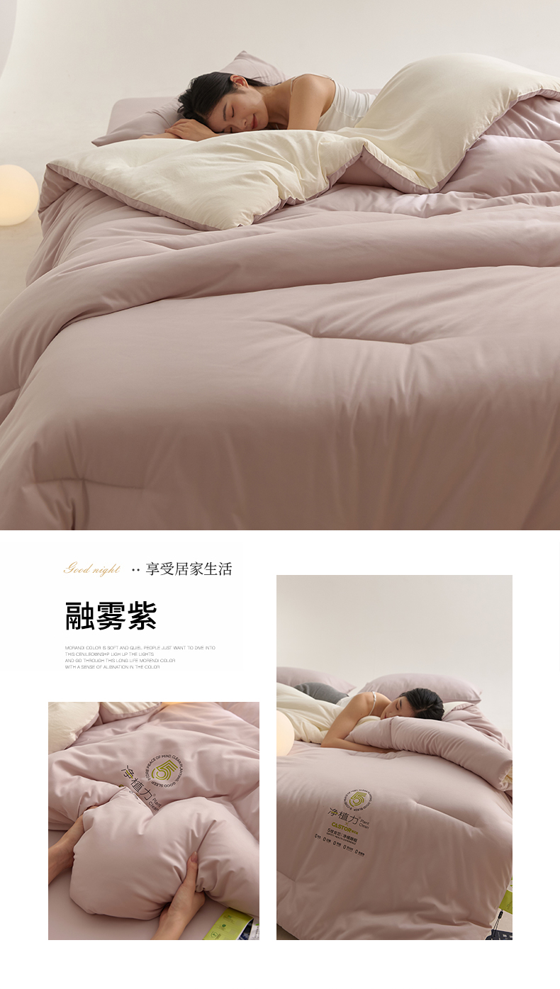 (总)头等舱 2025新款针织A类软糯净植力抗菌防螨防霉低致敏双拼秋冬被(模特图),典雅蓝+粉玉,米黄+本白,浅灰+天空蓝,浅紫+奶黄,可配包装
