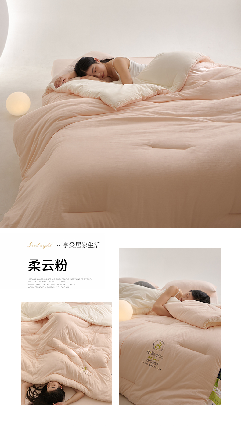 (总)头等舱 2025新款四季棉纯色A类20大豆7A抗菌秋冬被(模特图),谧境-豆沙粉,谧境-奶白,谧境-浅绿,谧境-水蓝,谧境-雅致灰