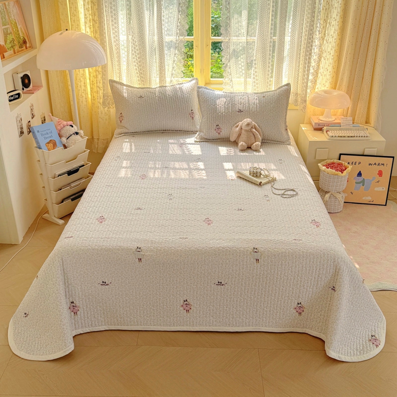 商品名称:优兰朵 2025新款夹棉印花包边单床盖 床盖单件 包边床盖-萌宠绿