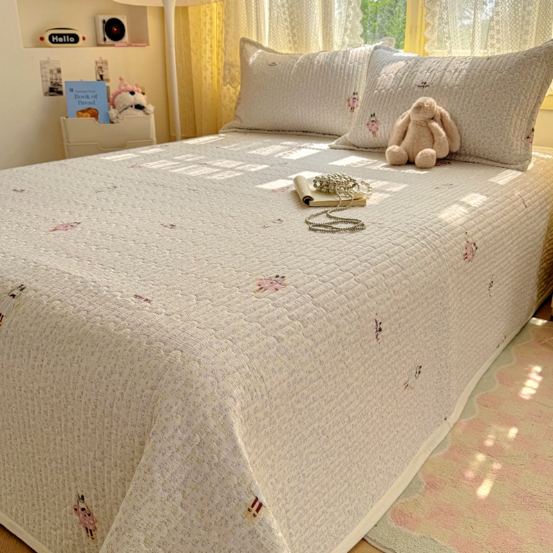 优兰朵 2025新款夹棉印花包边单床盖 床盖单件 包边床盖-萌宠绿