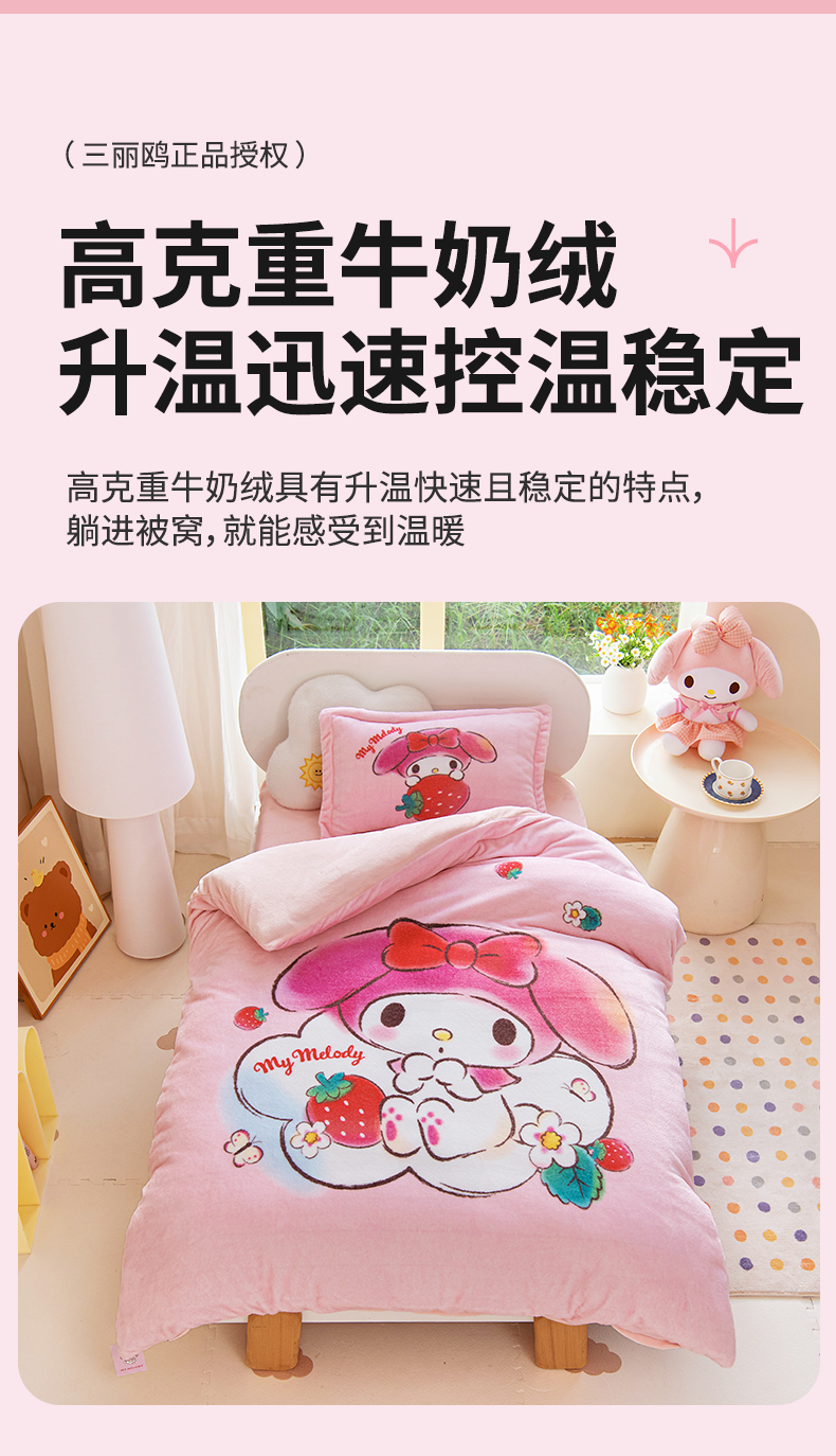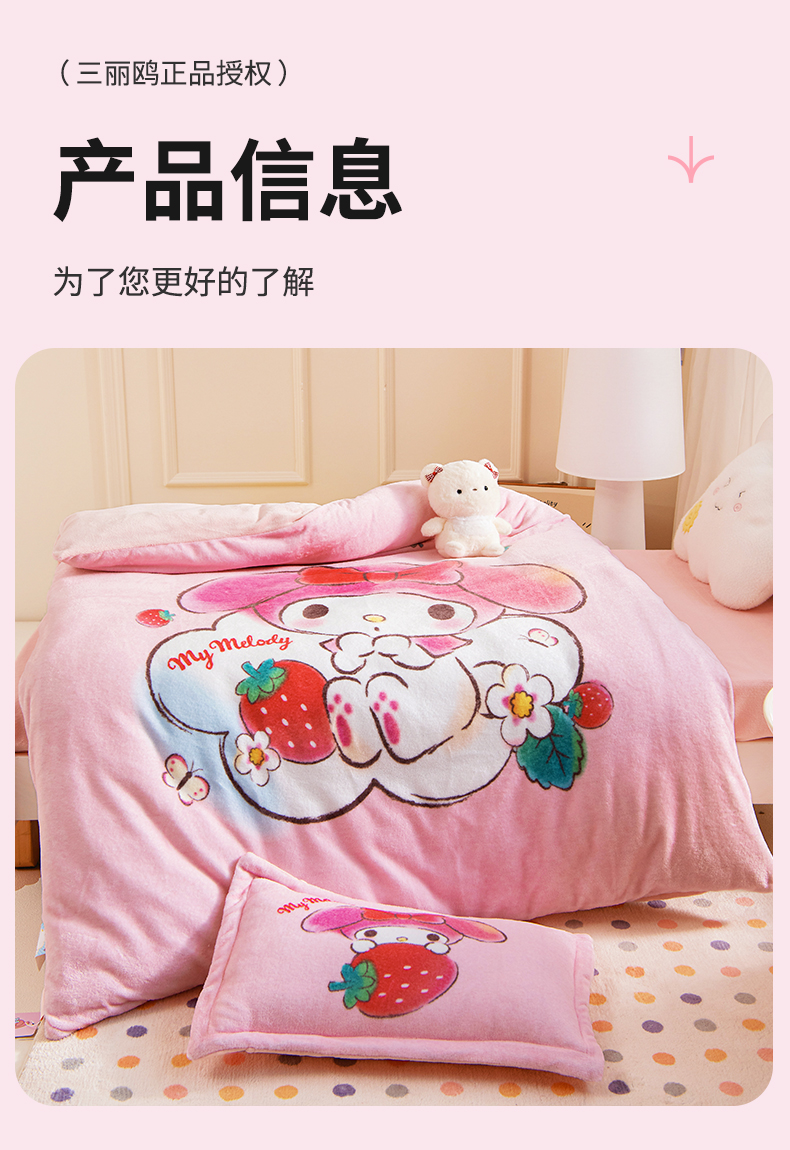 当前位置: 91家纺网 > 商品网购 > 床品套件 > 多件套 > 多件套 > 乐秀家纺 2025新款大版三丽鸥牛奶绒被子六件套 草莓美乐蒂