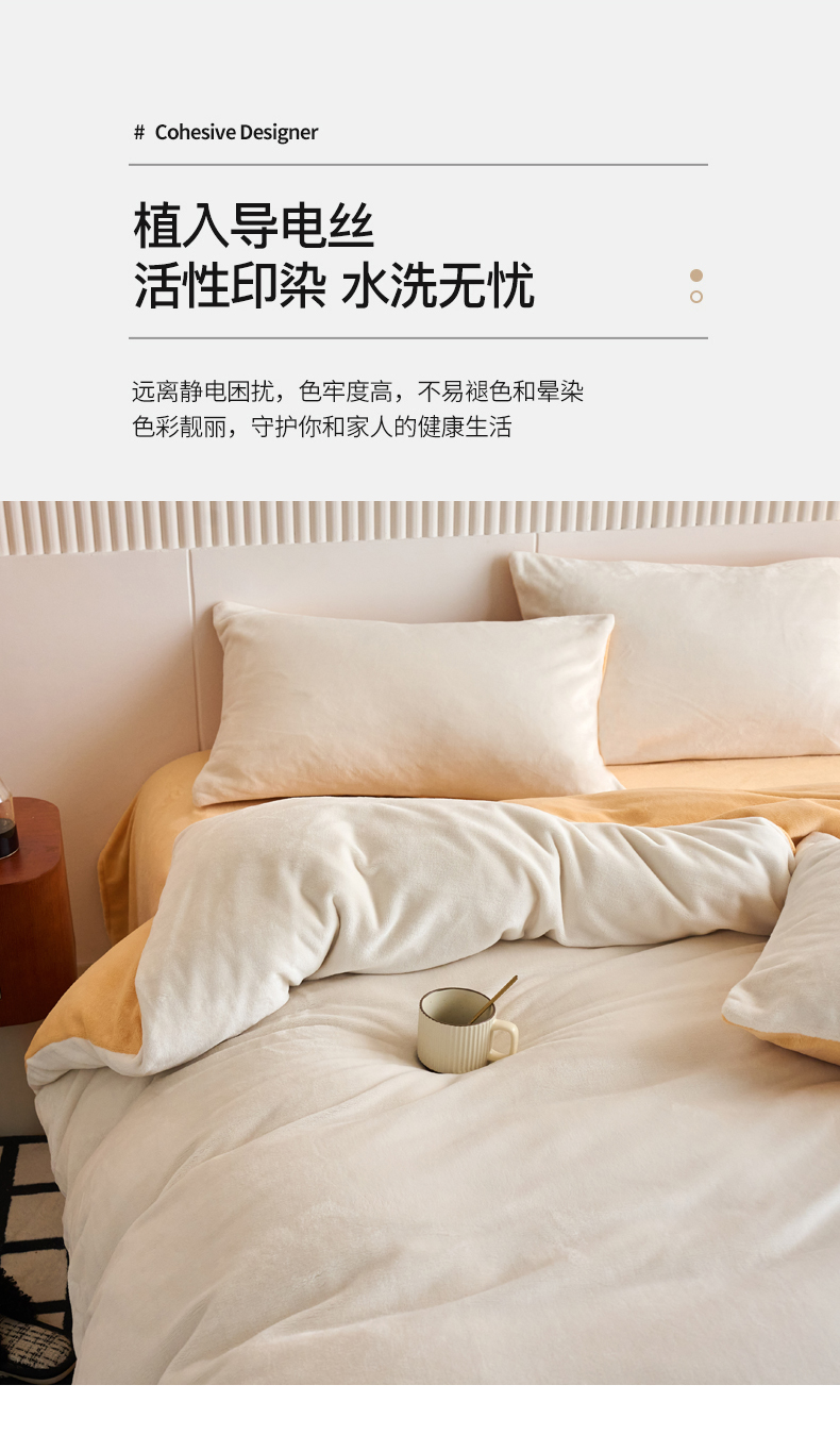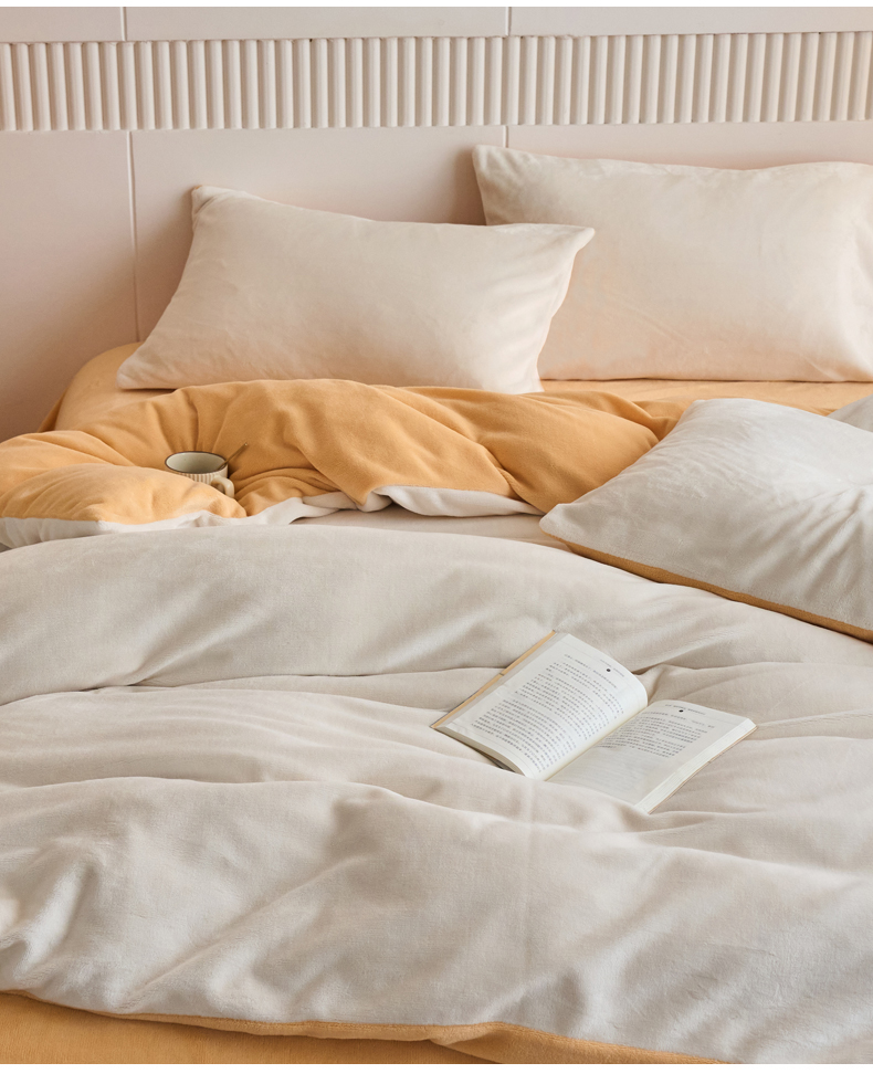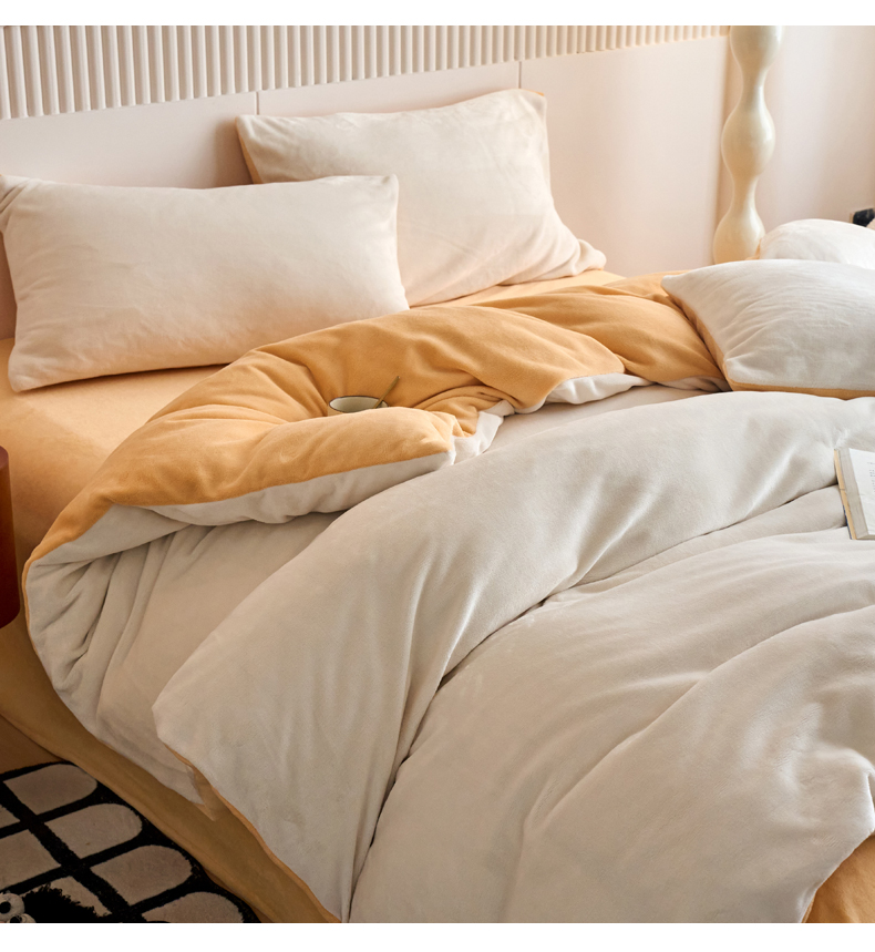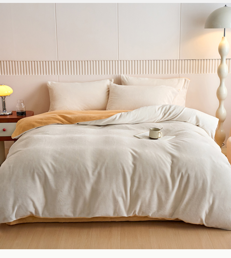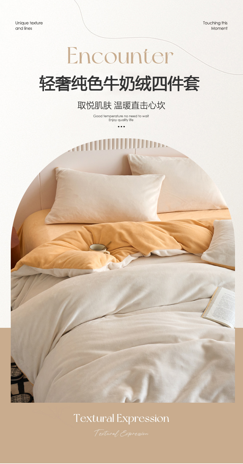 当前位置: 91家纺网 > 商品网购 > 床品套件 > 四件套 > 牛奶绒四件套 > 乐居家纺 2025新款200克重纯色单面绒牛奶绒四件套 奶昔白+雏菊黄