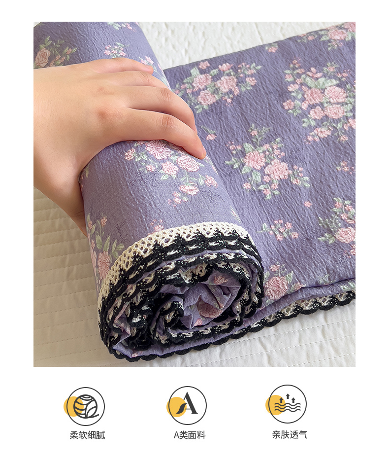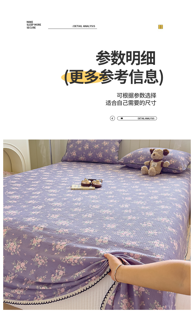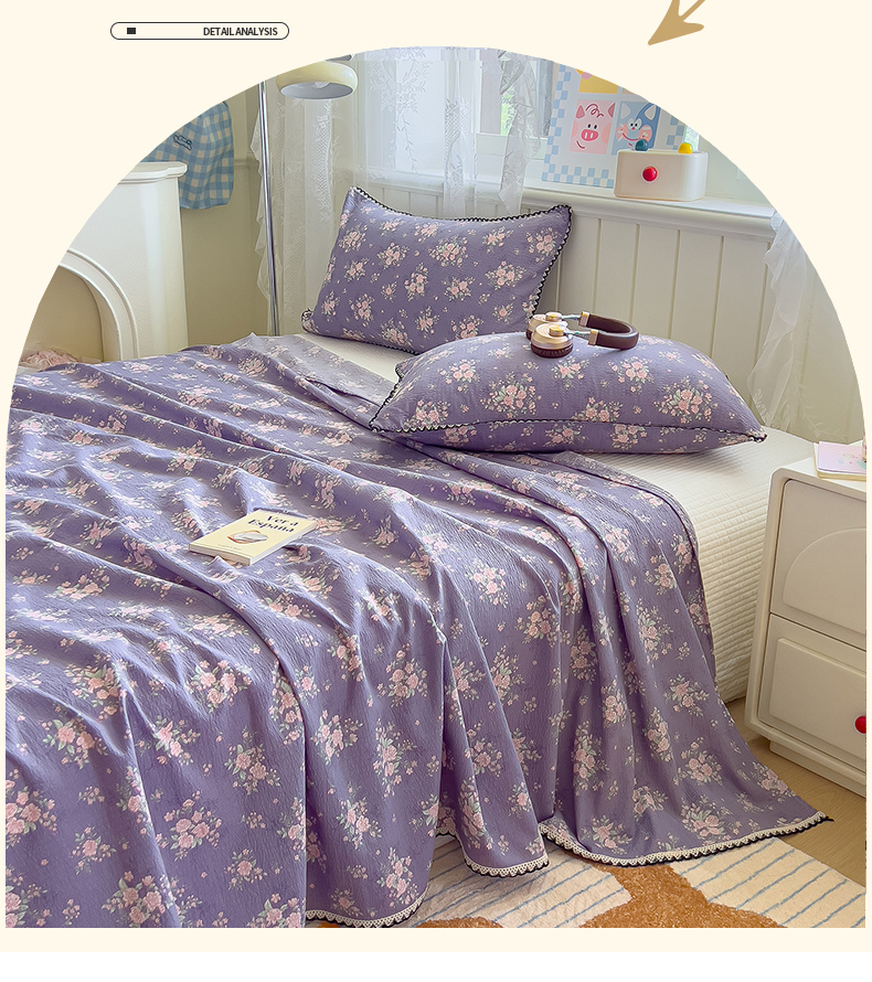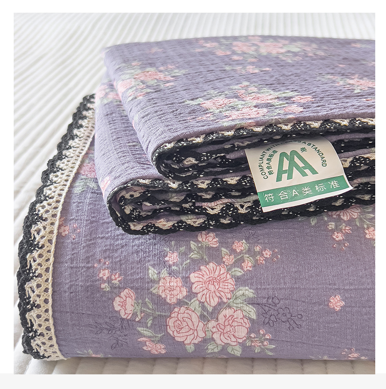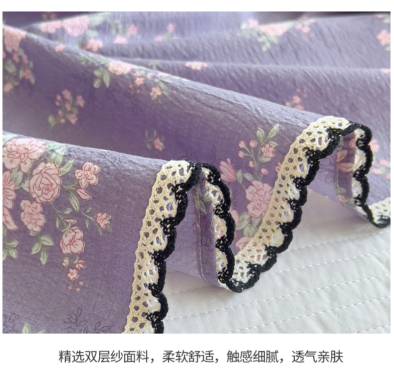 当前位置: 91家纺网 > 商品网购 > 床上用品 > 床单 > 三盛源 2025新款韩版碎花皱皱双层纱镂空花边水洗棉单床单床单单件 含烟蔻-紫