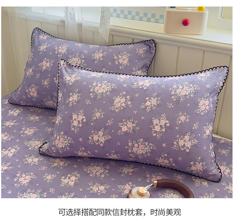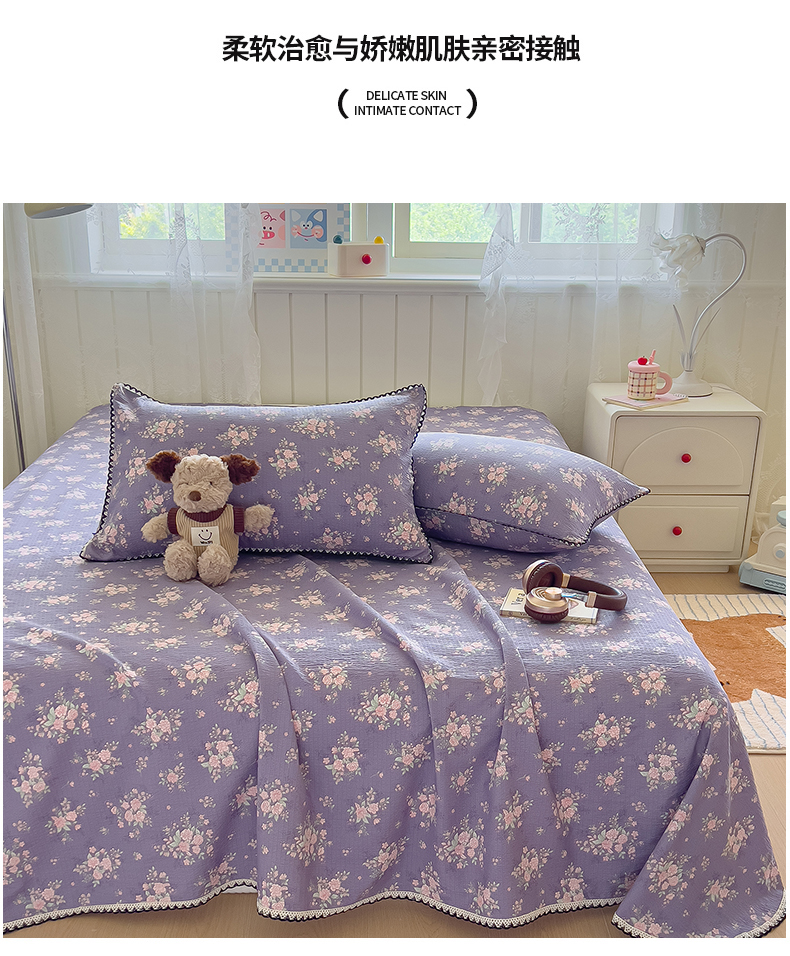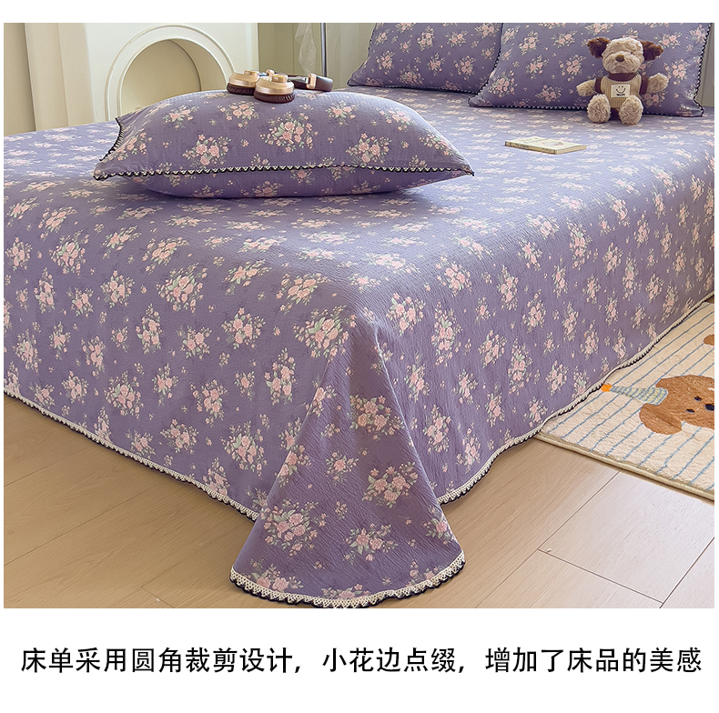 三盛源 2025新款韩版碎花皱皱双层纱镂空花边水洗棉单床单床单单件 含烟蔻-紫