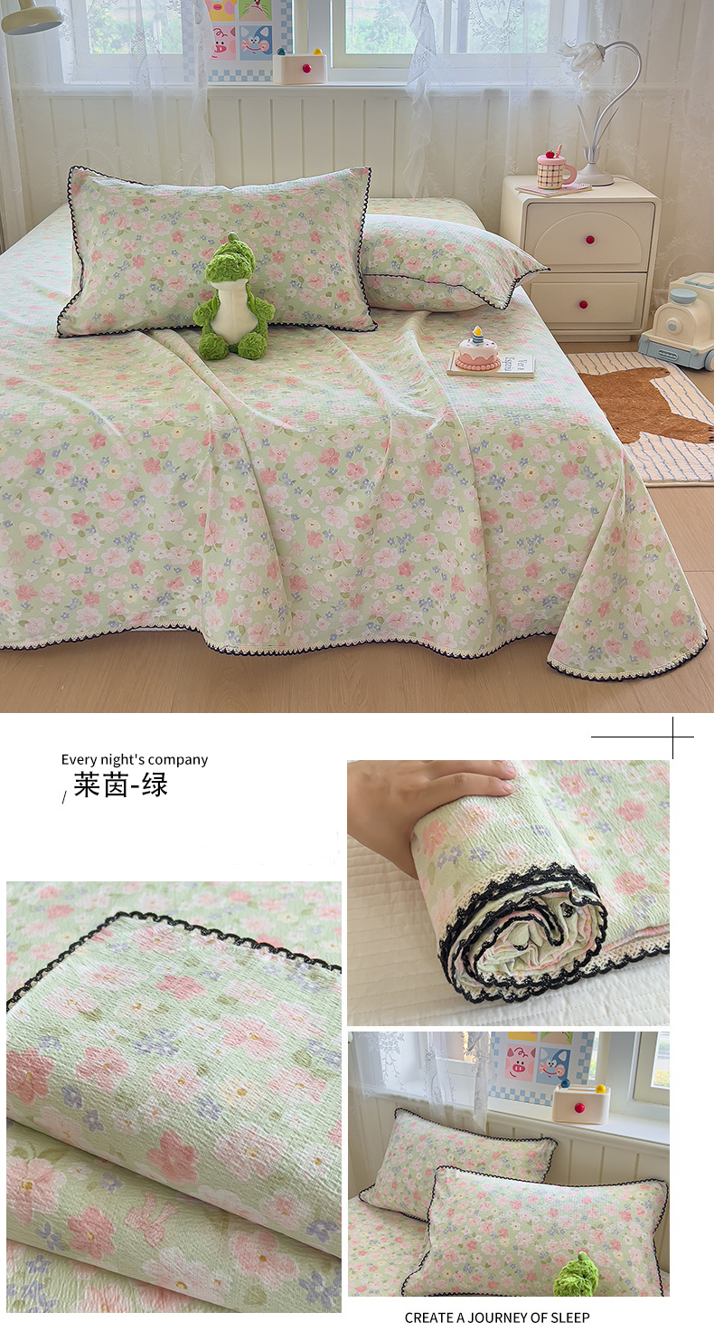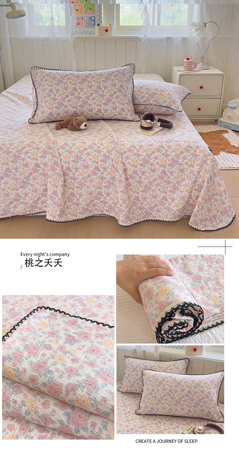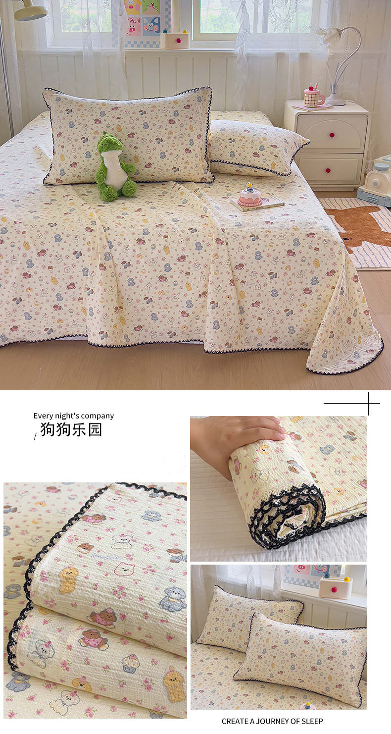 (总)三盛源 2025新款韩版碎花皱皱双层纱镂空花边水洗棉单床单床单单件,波点兔-蓝,狗狗乐园,含烟蔻-紫,莱茵-绿,梦境,奶油芝士,桃之妖妖,樱桃波波