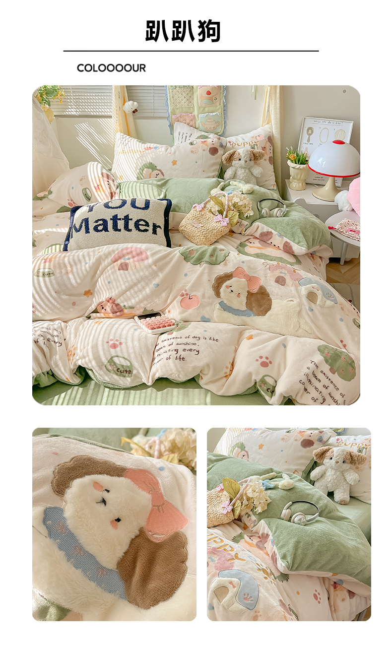 当前位置: 91家纺网 > 商品网购 > 床品套件 > 四件套 > 牛奶绒四件套 > (总)子钦家纺 2025秋冬新款加厚牛奶绒卡通印花贴布绣床单床笠四件套