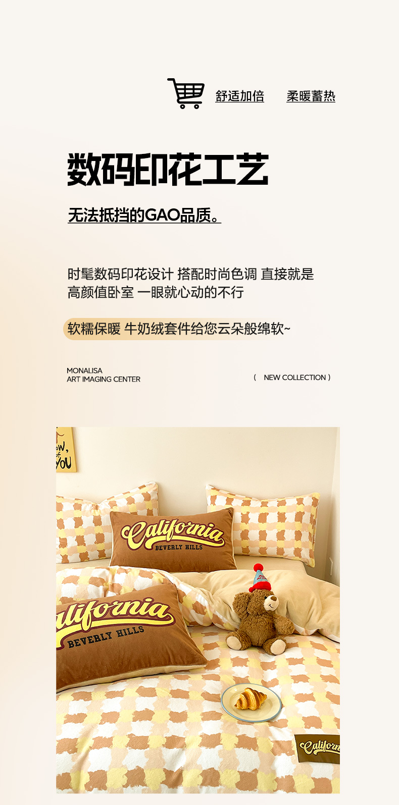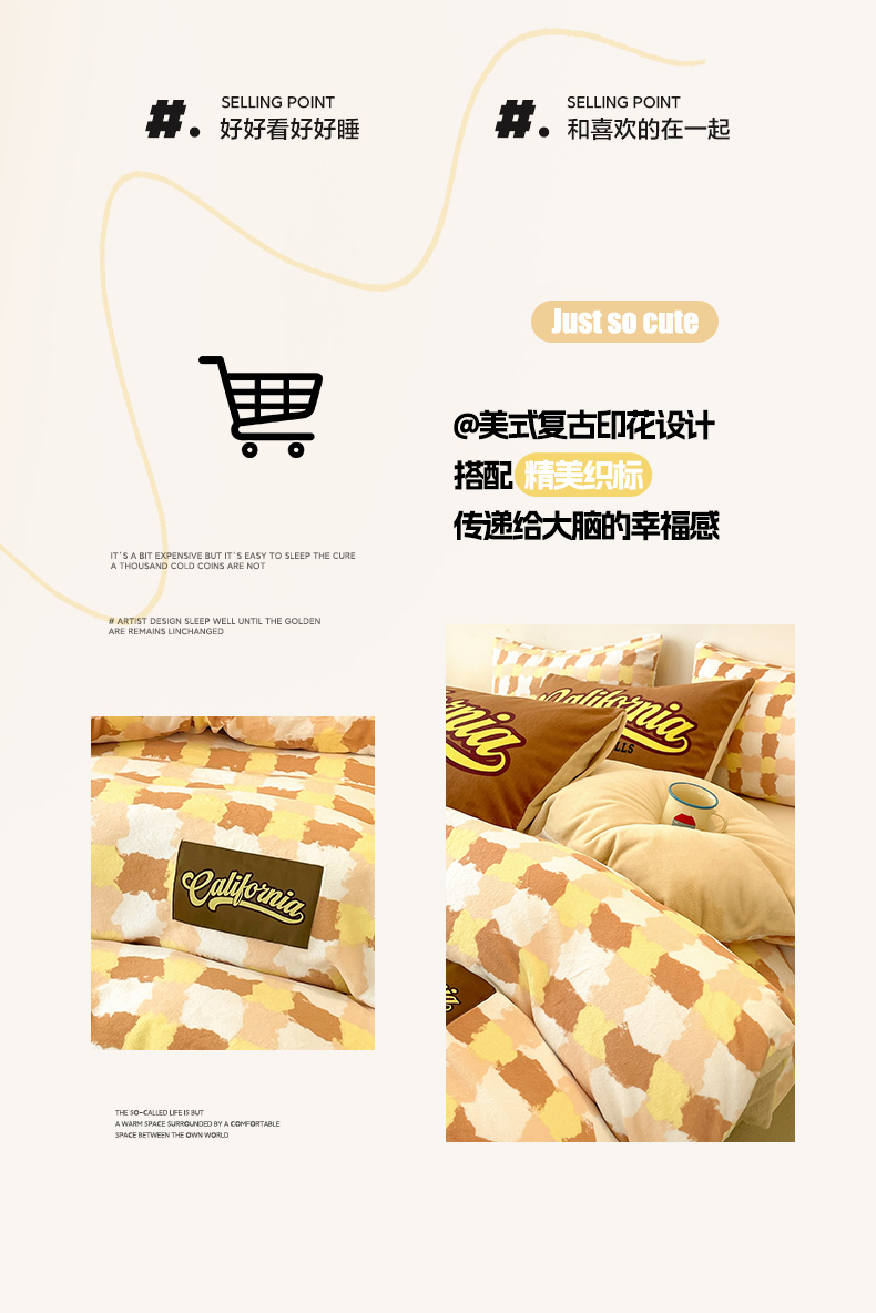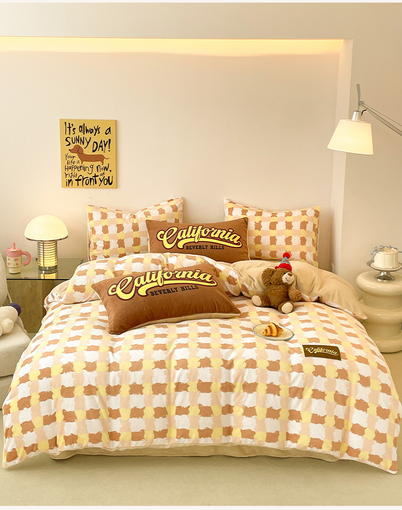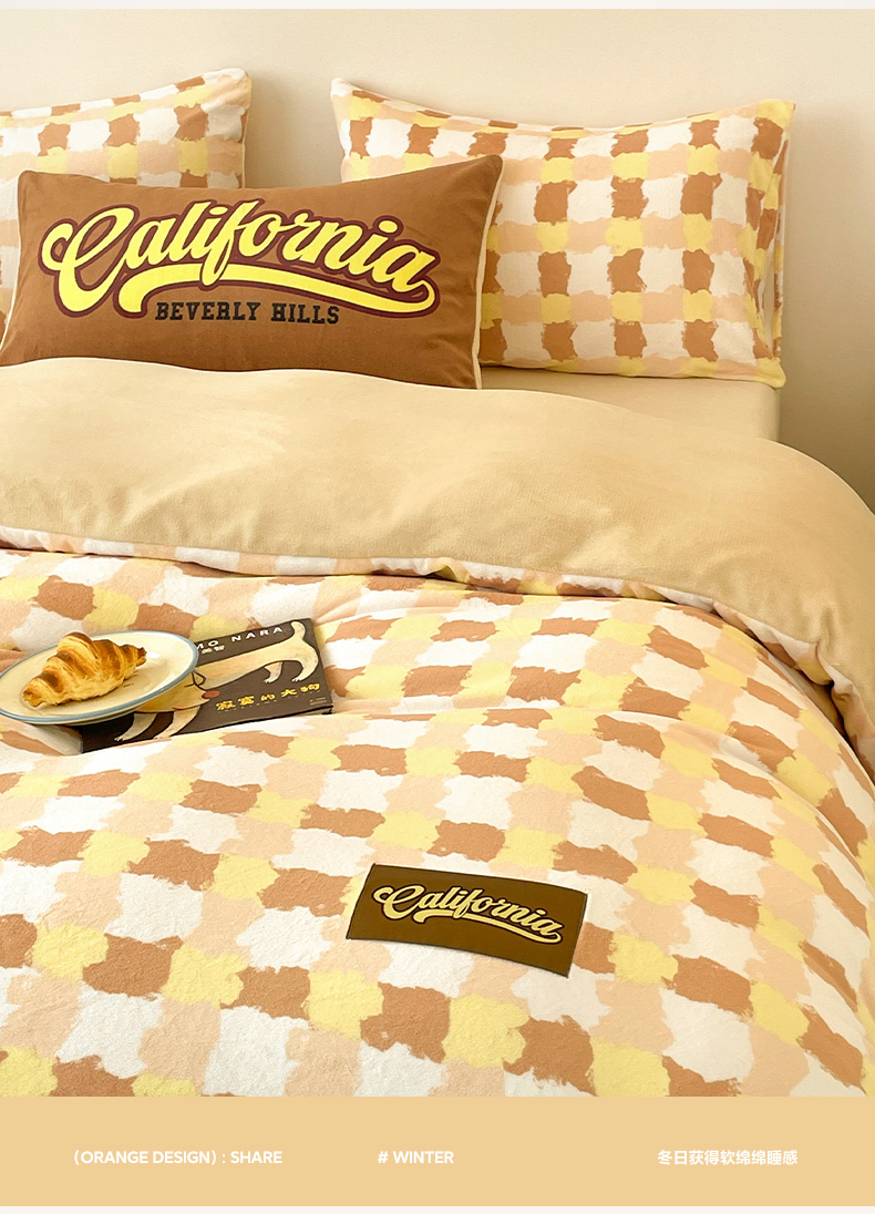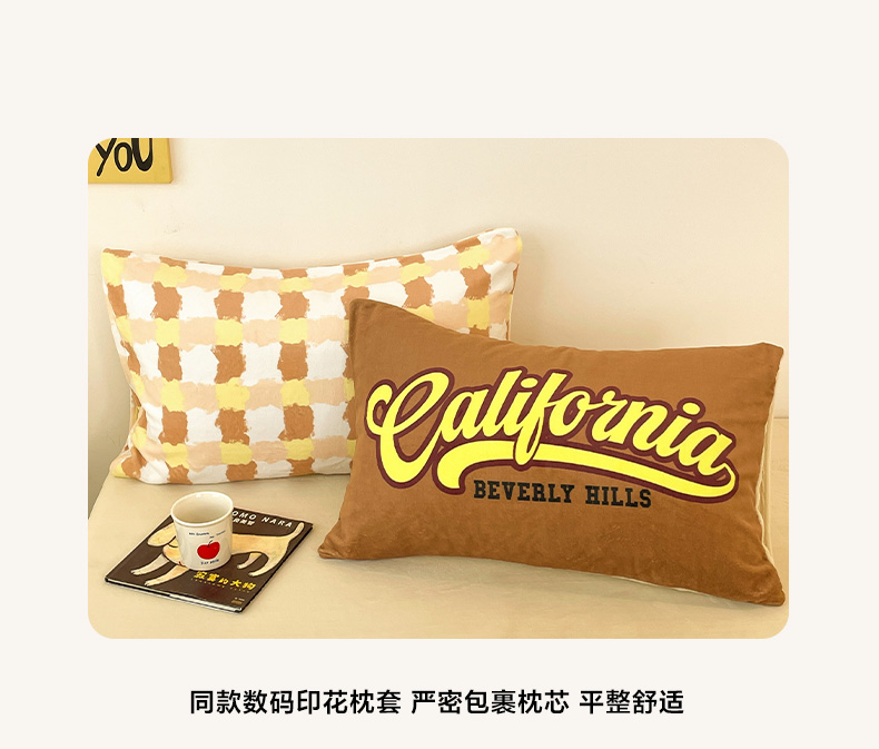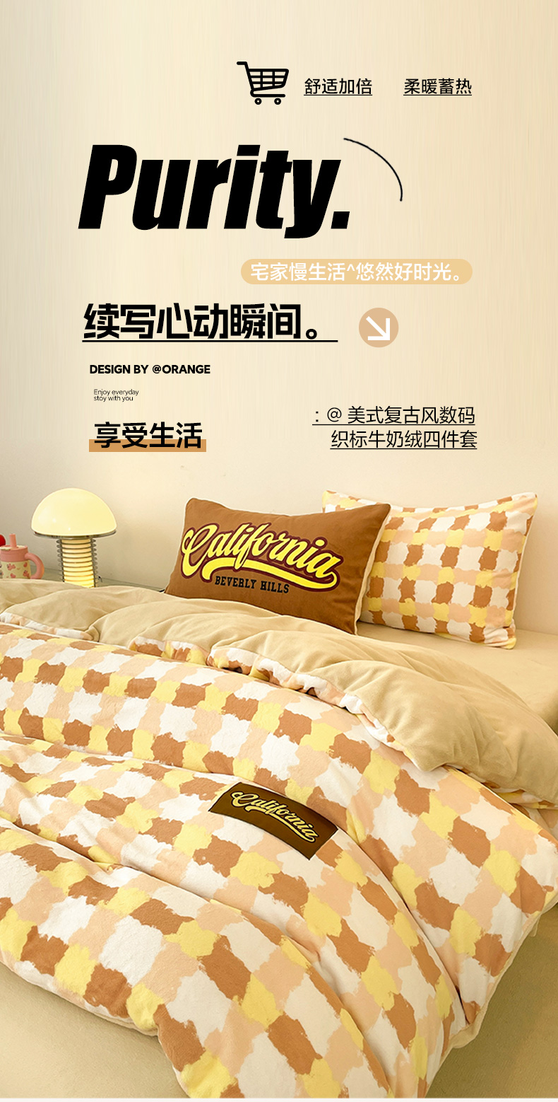 商品名称:如一 2025新款美式复古风数码织标牛奶绒四件套 复古咖