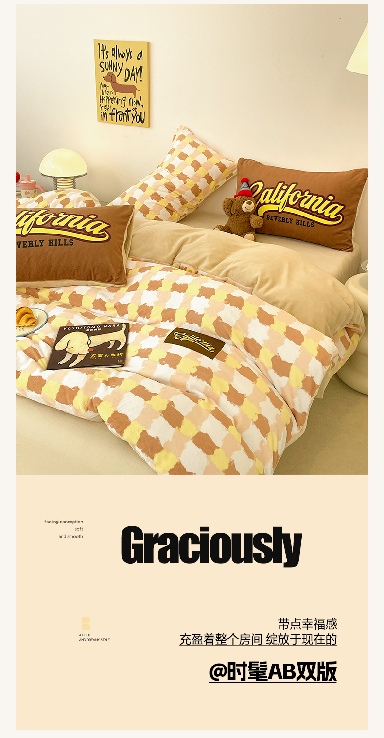 (总)如一 2025新款高克重大版数码印花牛奶绒四件套,毛毛狗,猫咪酱,俏皮狗,色彩猫,小熊仔,熊猫咖,游乐园,粉伙伴,拉兔咖,萌宠黄,萌宠绿,萌派对,围巾狗,线条狗,小粉喵,小花喵,小伙伴