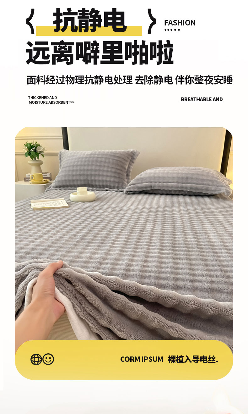 (总)宅部落 2025新款加厚牛奶绒泡泡绒单床笠床笠单品床笠单件,淡雅橙,深灰,星空灰,优雅白,优雅粉,优雅驼