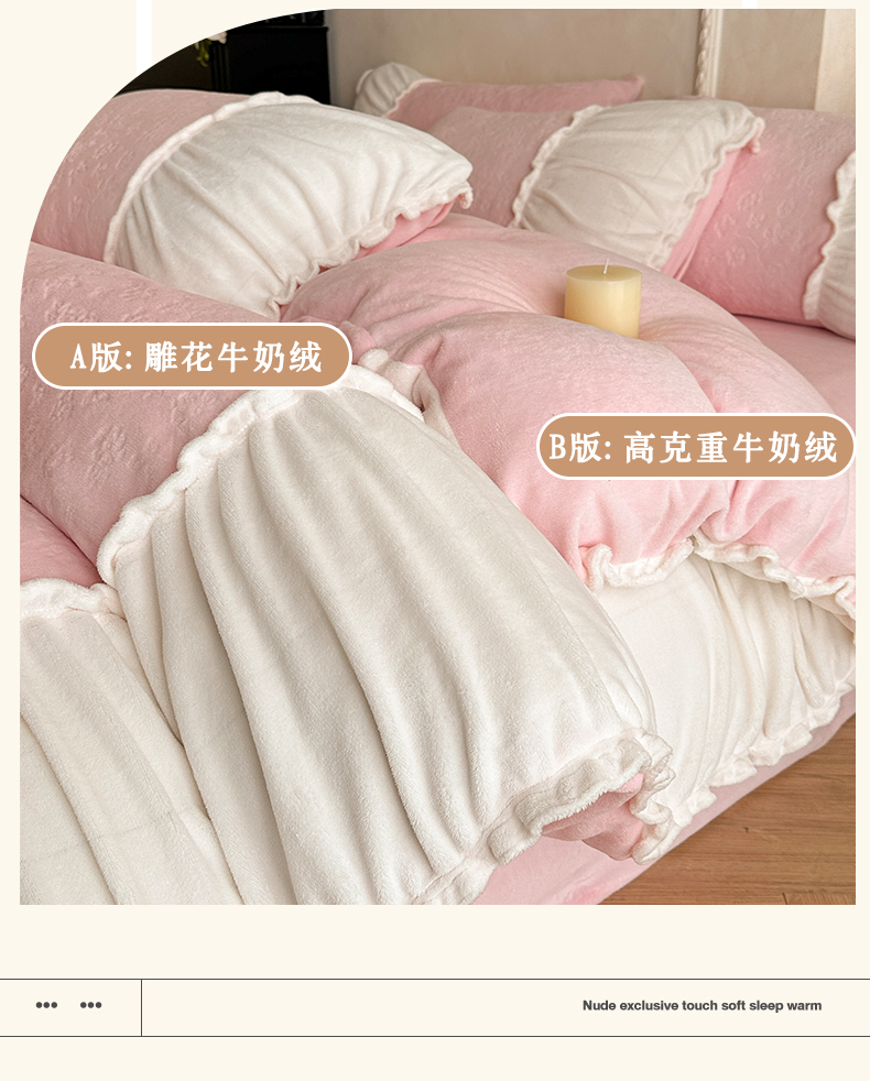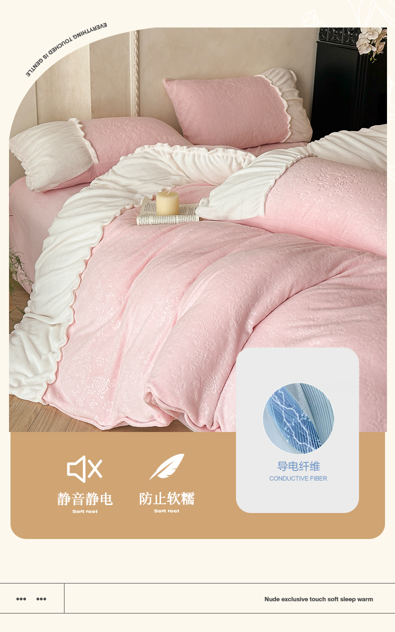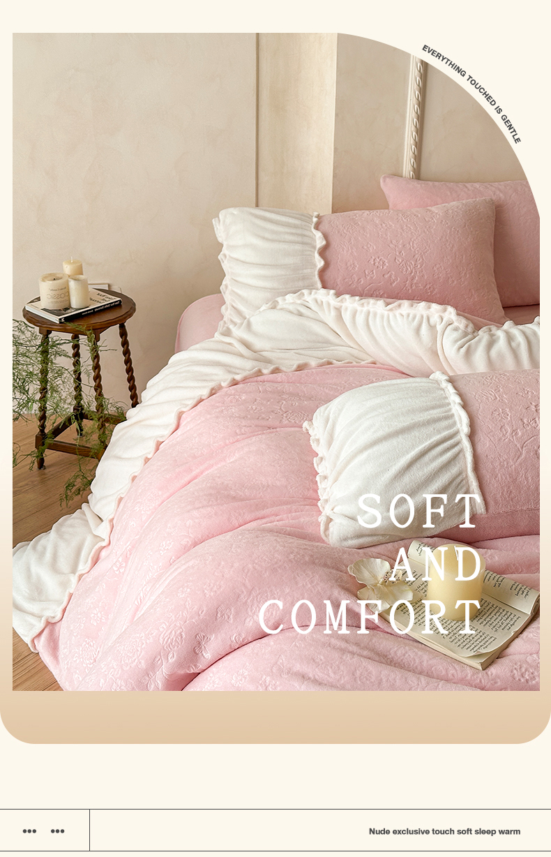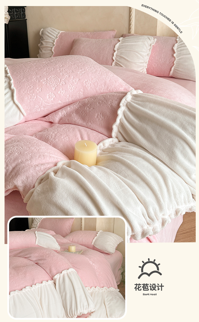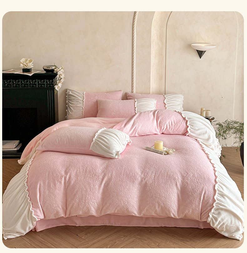商品名称:逸尚阁 2025新款法式立体雕花牛奶绒四件套--绒格娜 绒格娜-仙粉