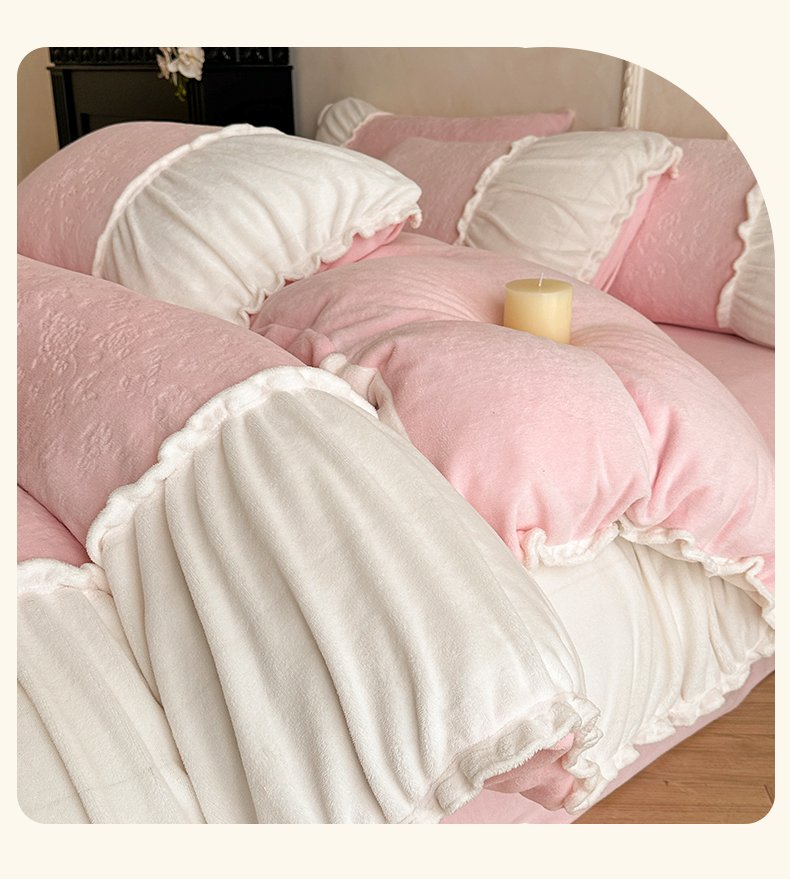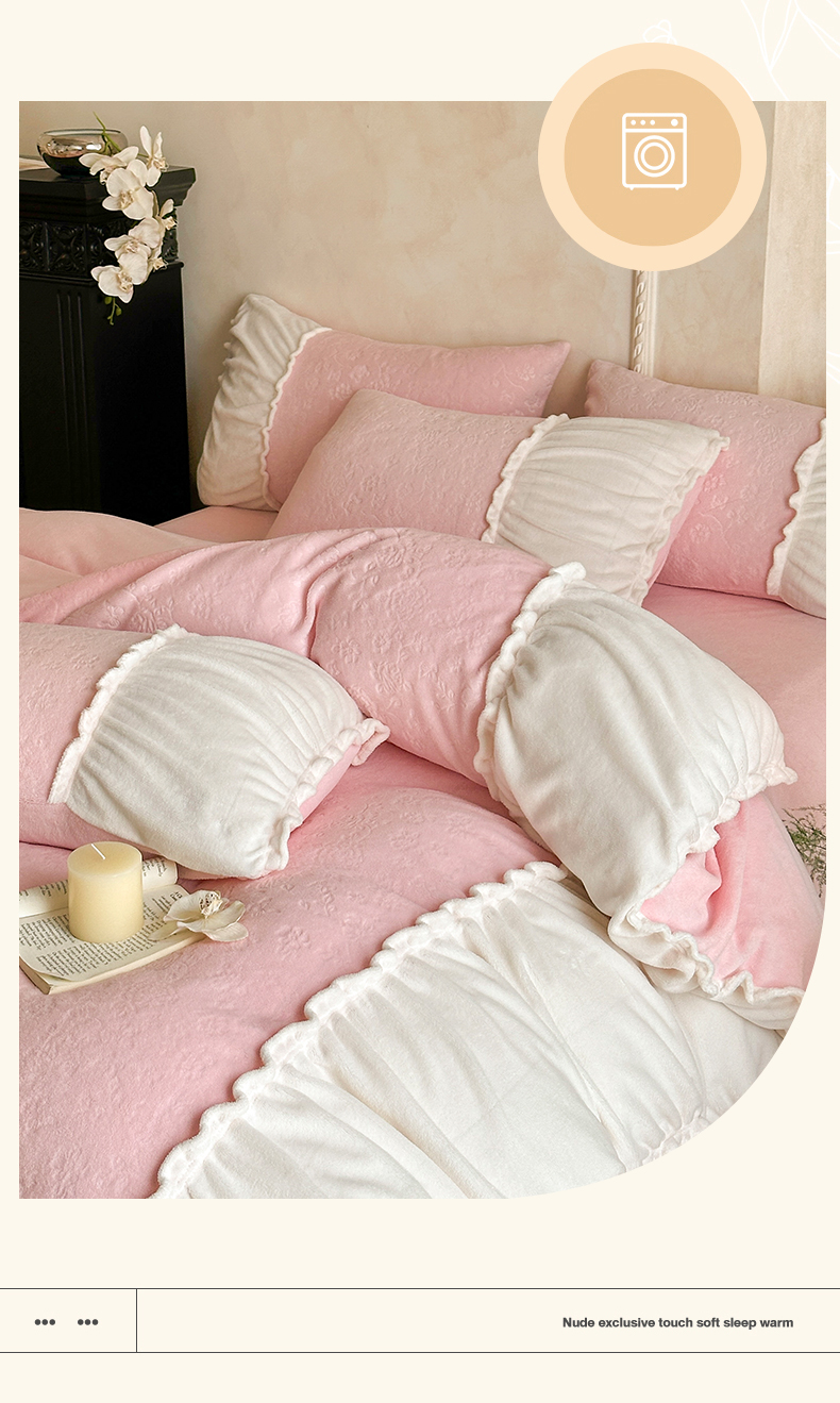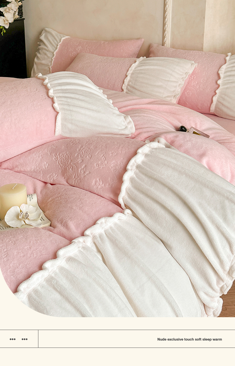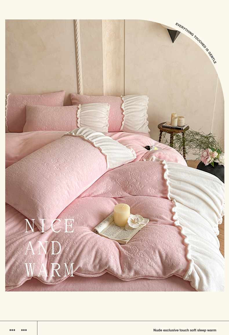 商品名称:逸尚阁 2025新款法式立体雕花牛奶绒四件套--绒格娜 绒格娜-仙粉