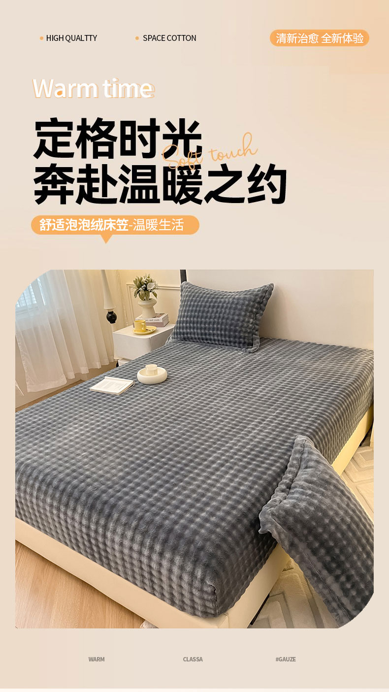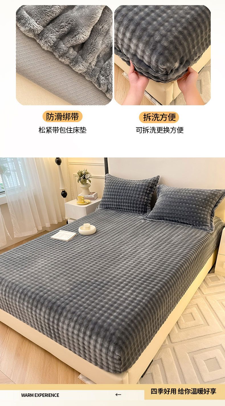 商品名称:宅部落 2025新款加厚牛奶绒泡泡绒单床笠床笠单品床笠单件 深灰