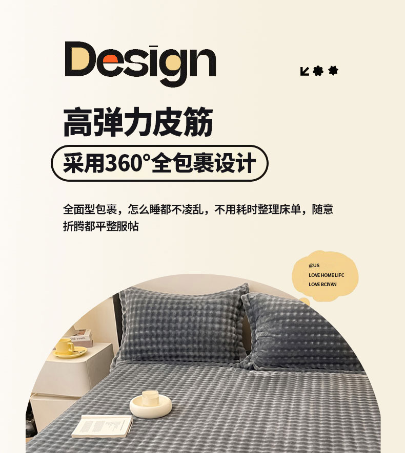 (总)宅部落 2025新款加厚牛奶绒泡泡绒单床笠床笠单品床笠单件,淡雅橙,深灰,星空灰,优雅白,优雅粉,优雅驼