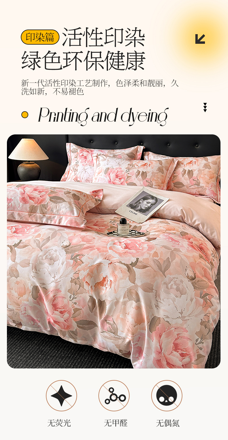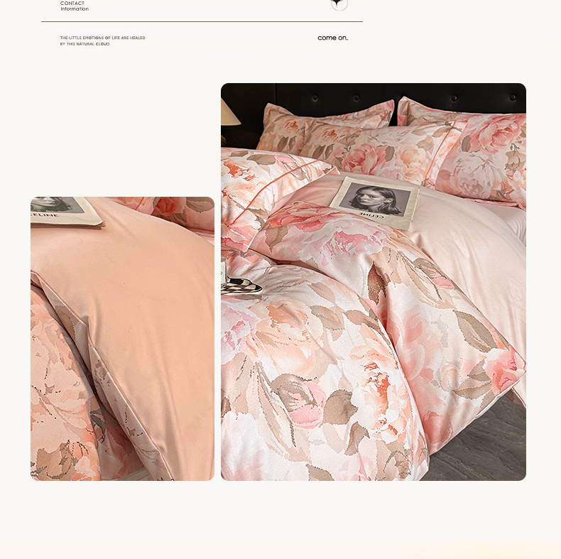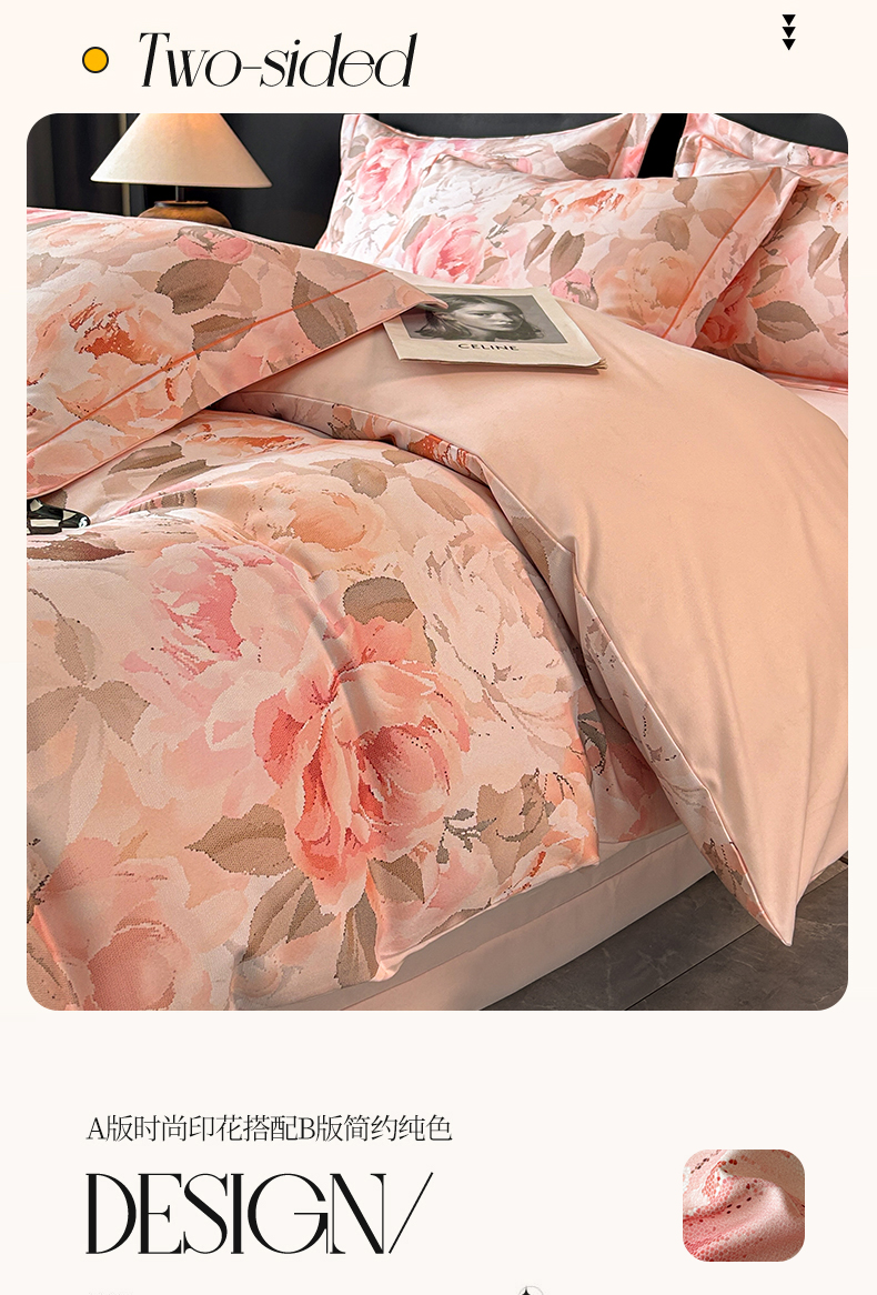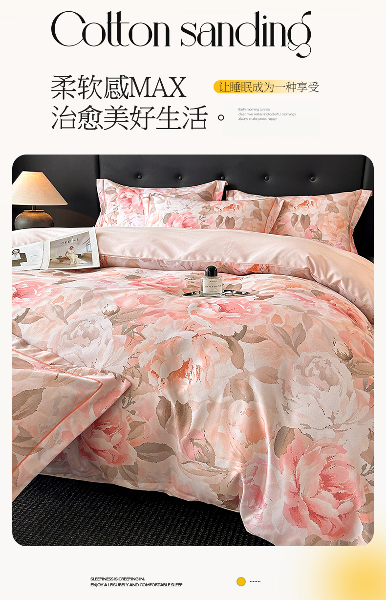 玉海棠家纺 2025新款数码印花加厚全棉磨毛四件套 粉色罗曼使
