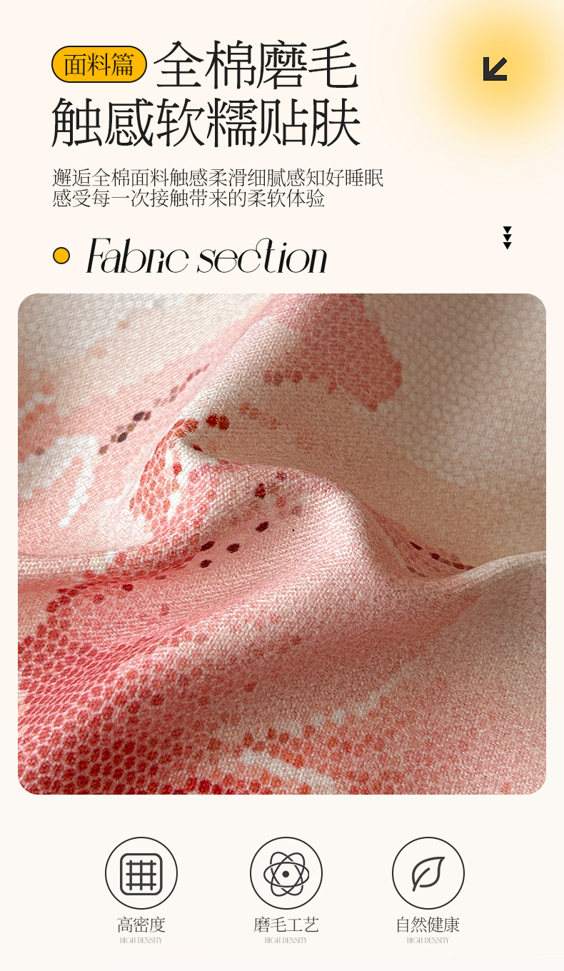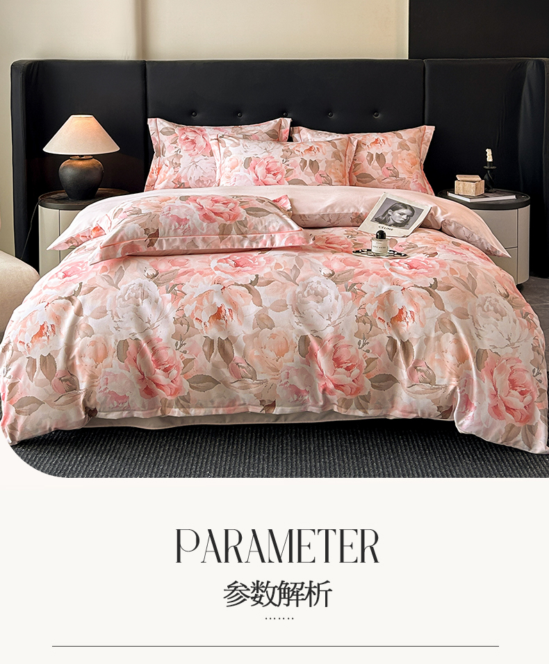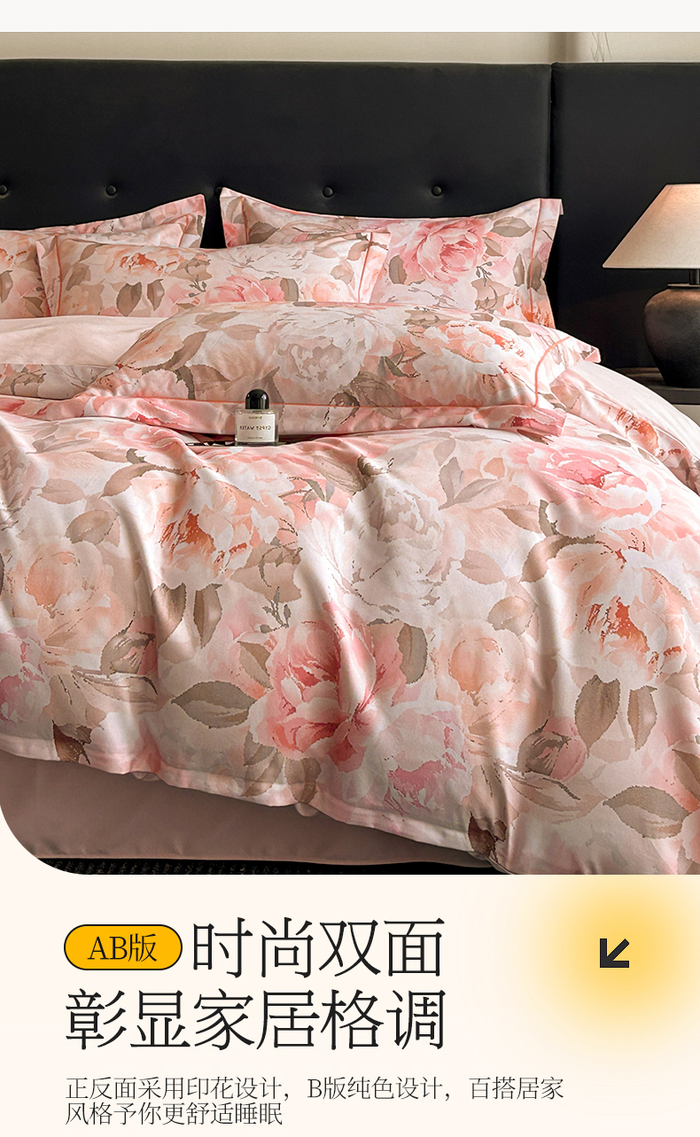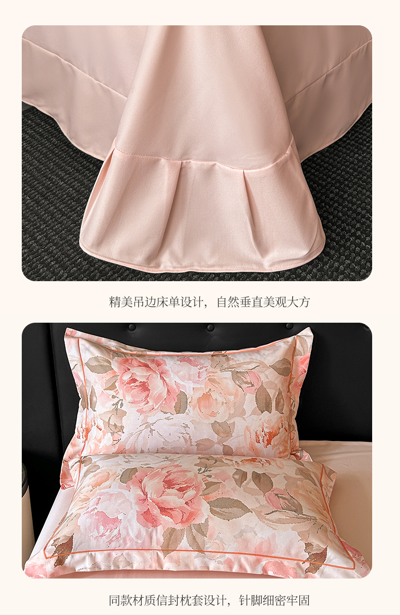 商品名称:玉海棠家纺 2025新款数码印花加厚全棉磨毛四件套 粉色罗曼使