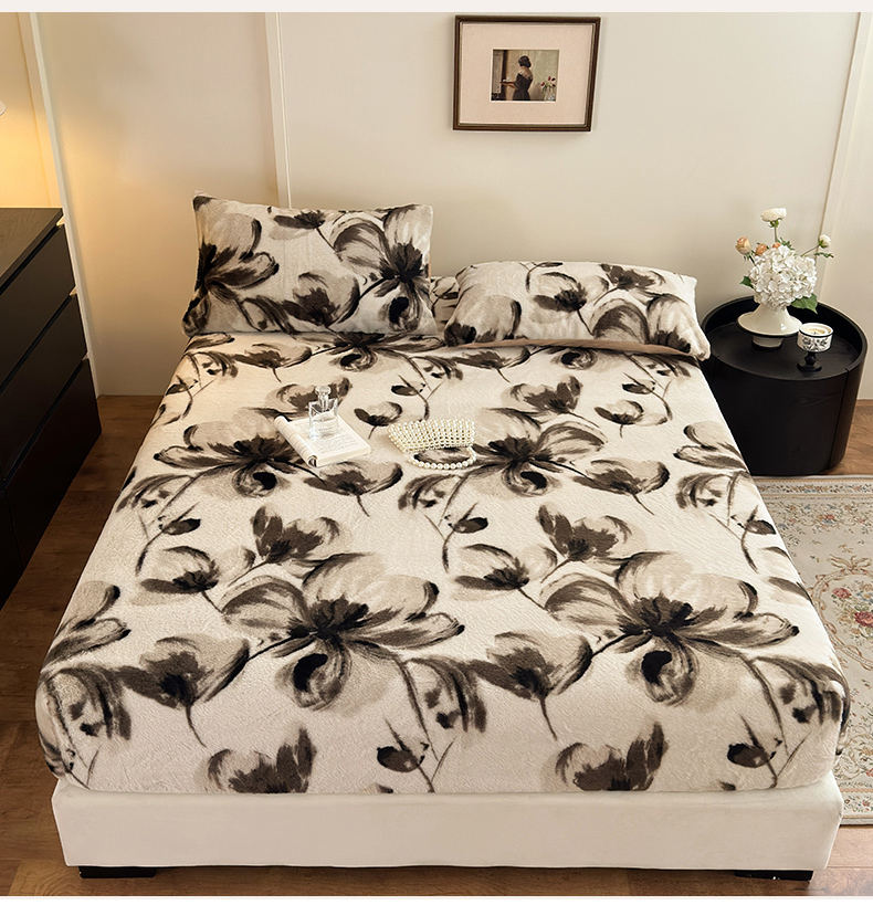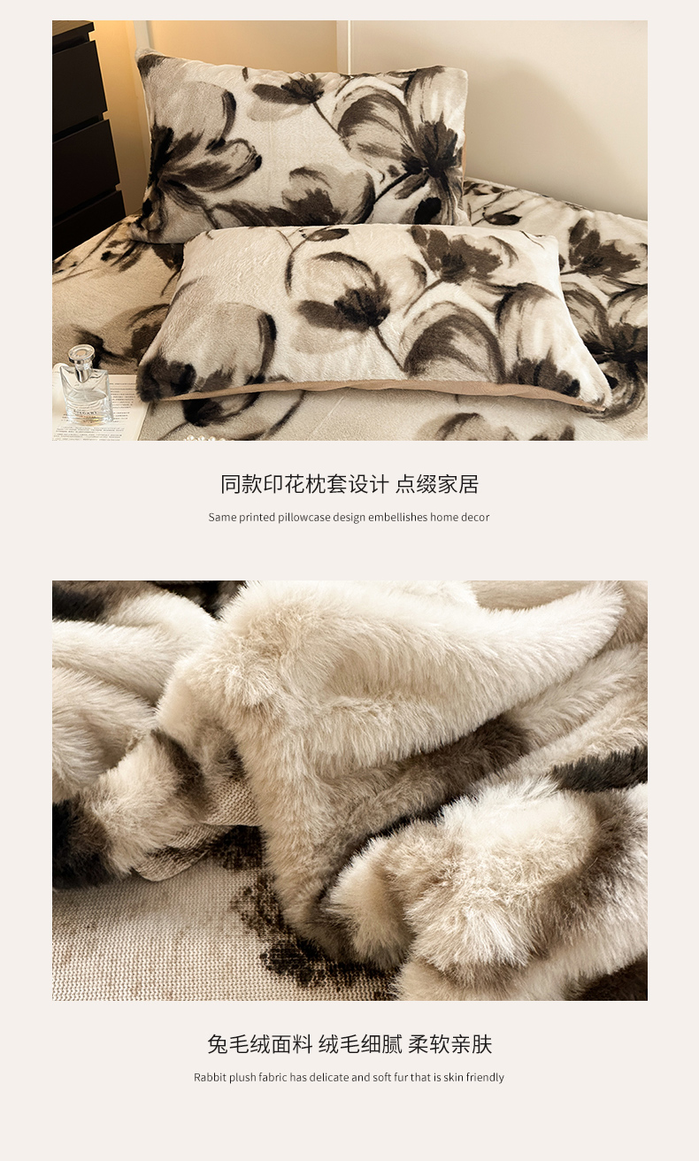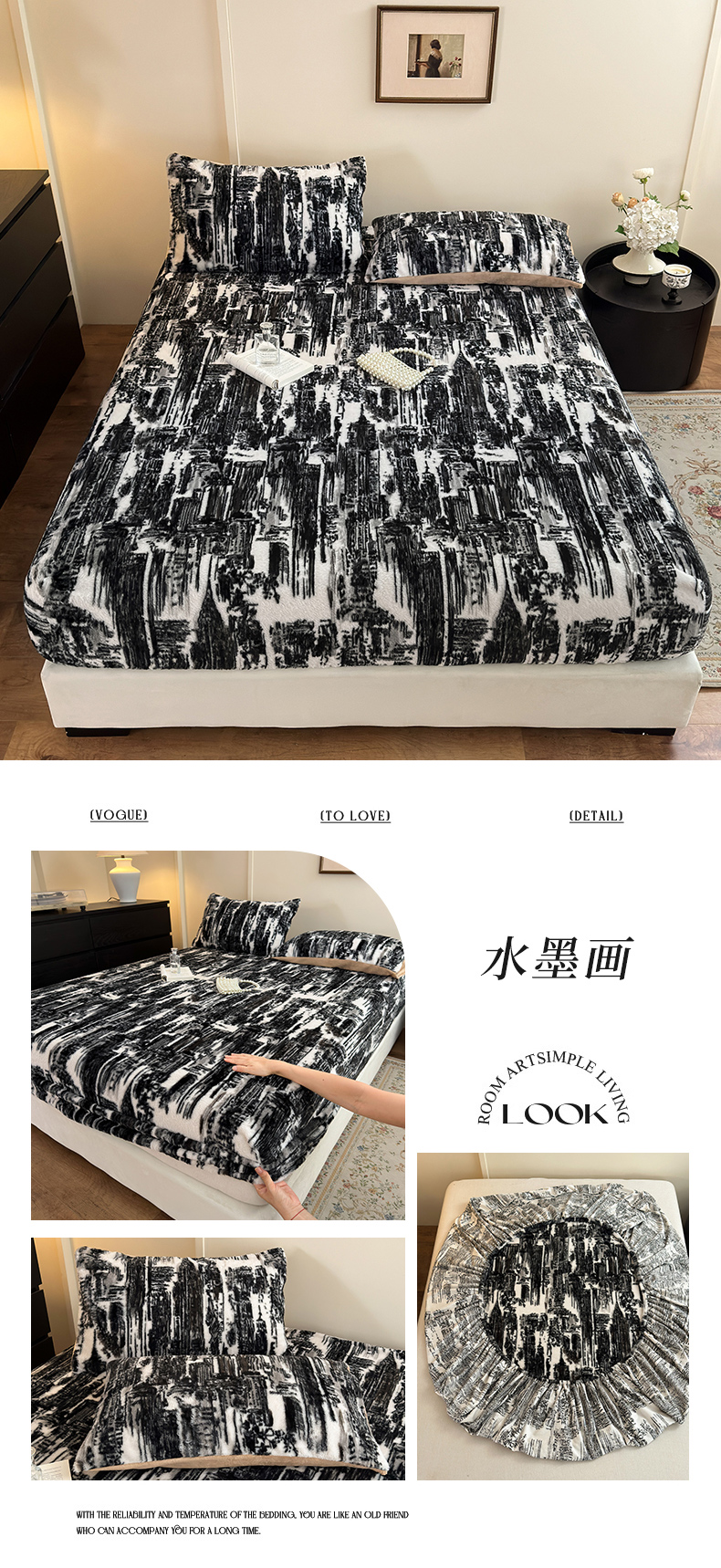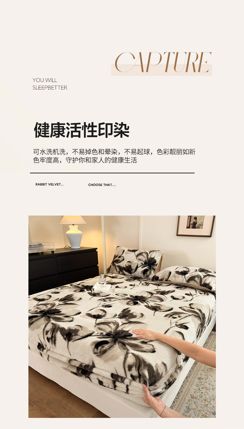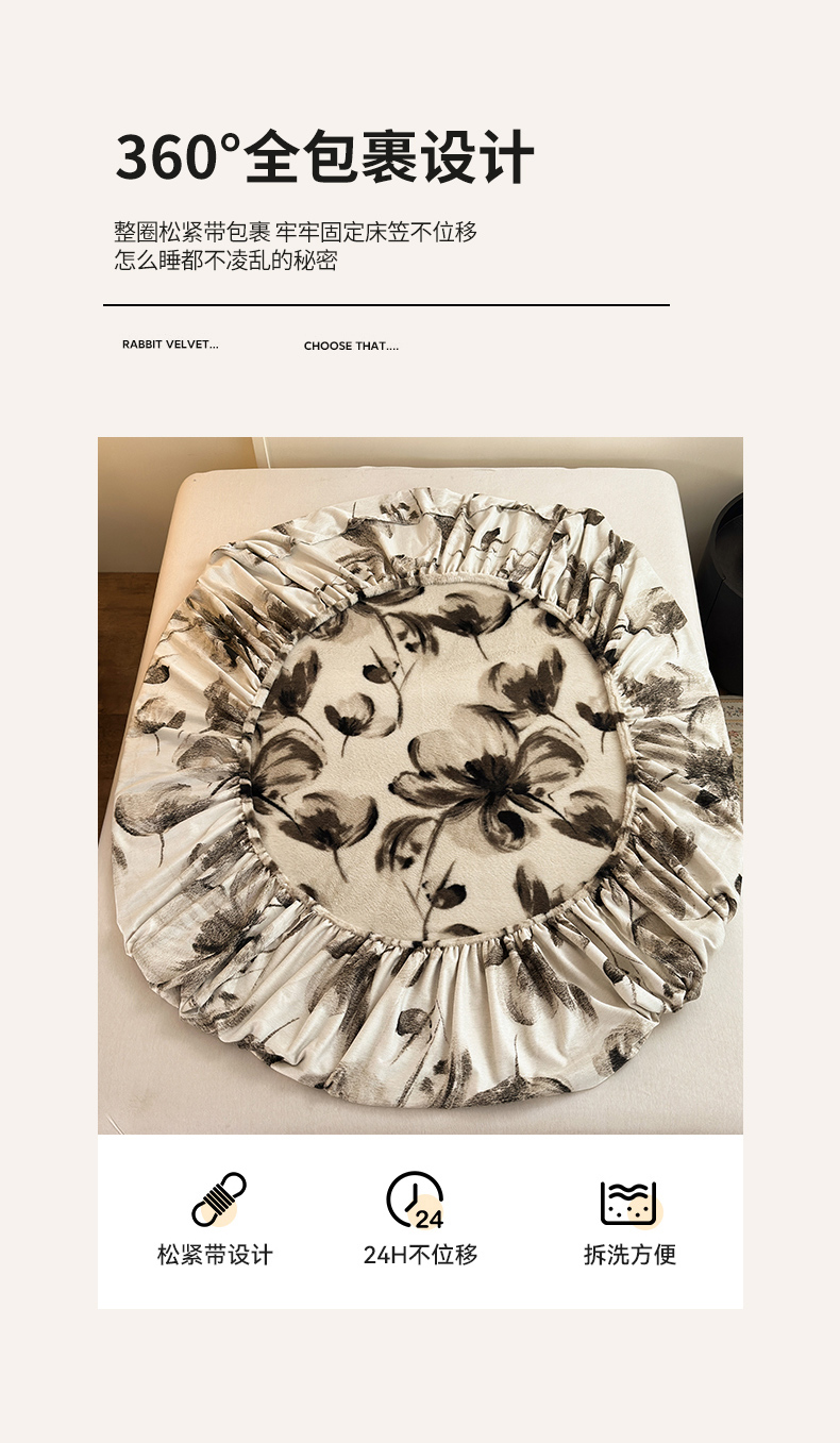 (总)娜娜 2025新款兔毛绒保暖床笠,黑牡丹,幻影,水墨画,妩媚,夜豹,组合图仅供展示