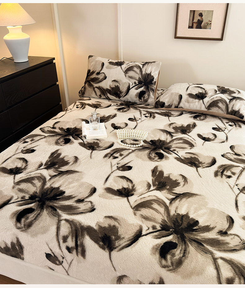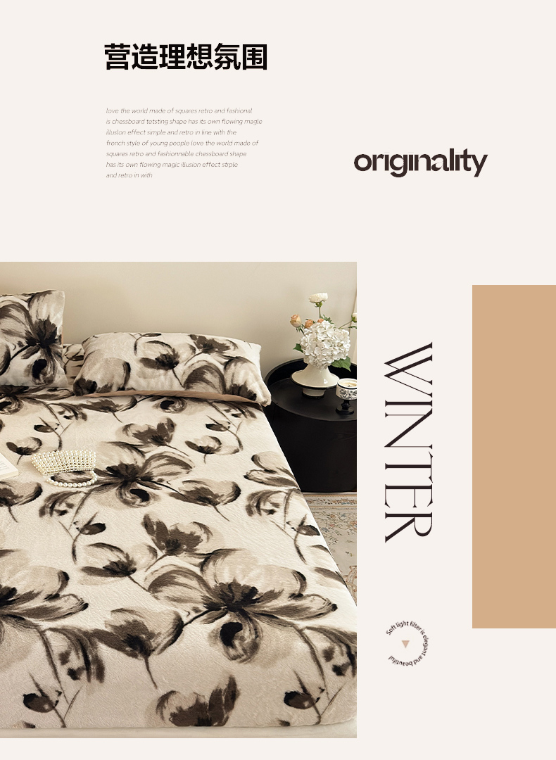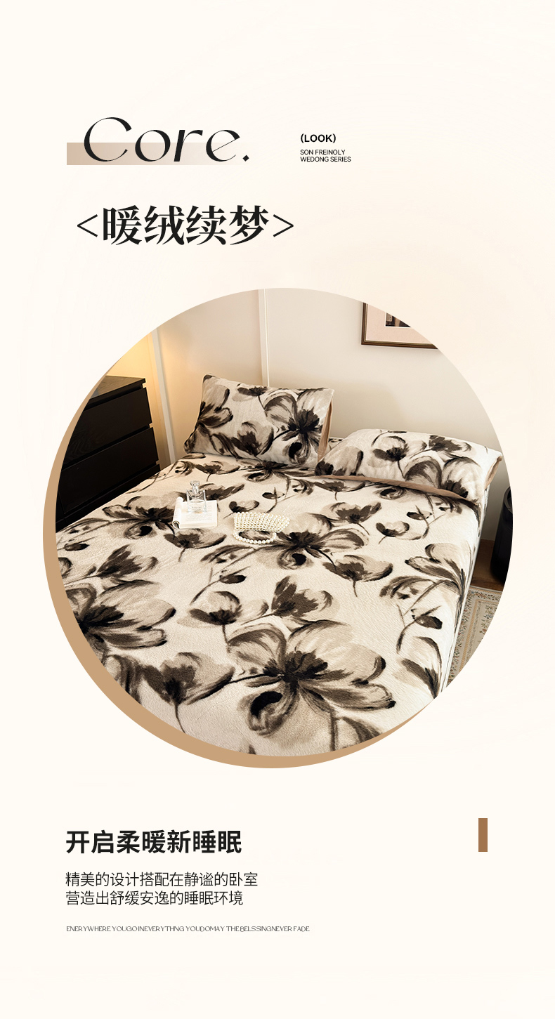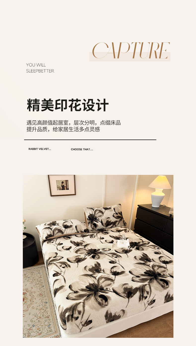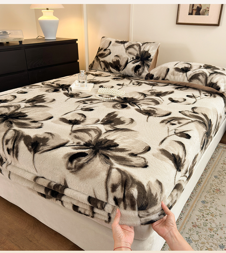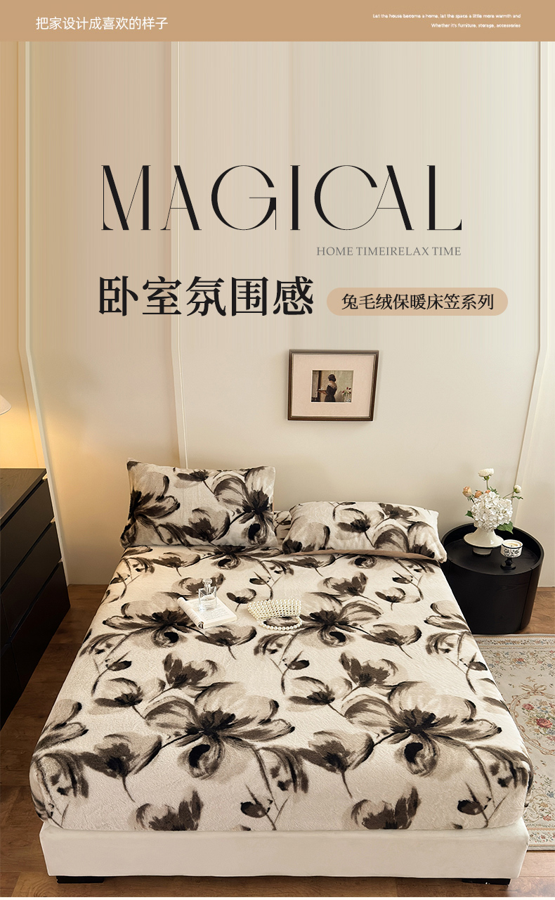 (总)娜娜 2025新款兔毛绒保暖床笠,黑牡丹,幻影,水墨画,妩媚,夜豹,组合图仅供展示