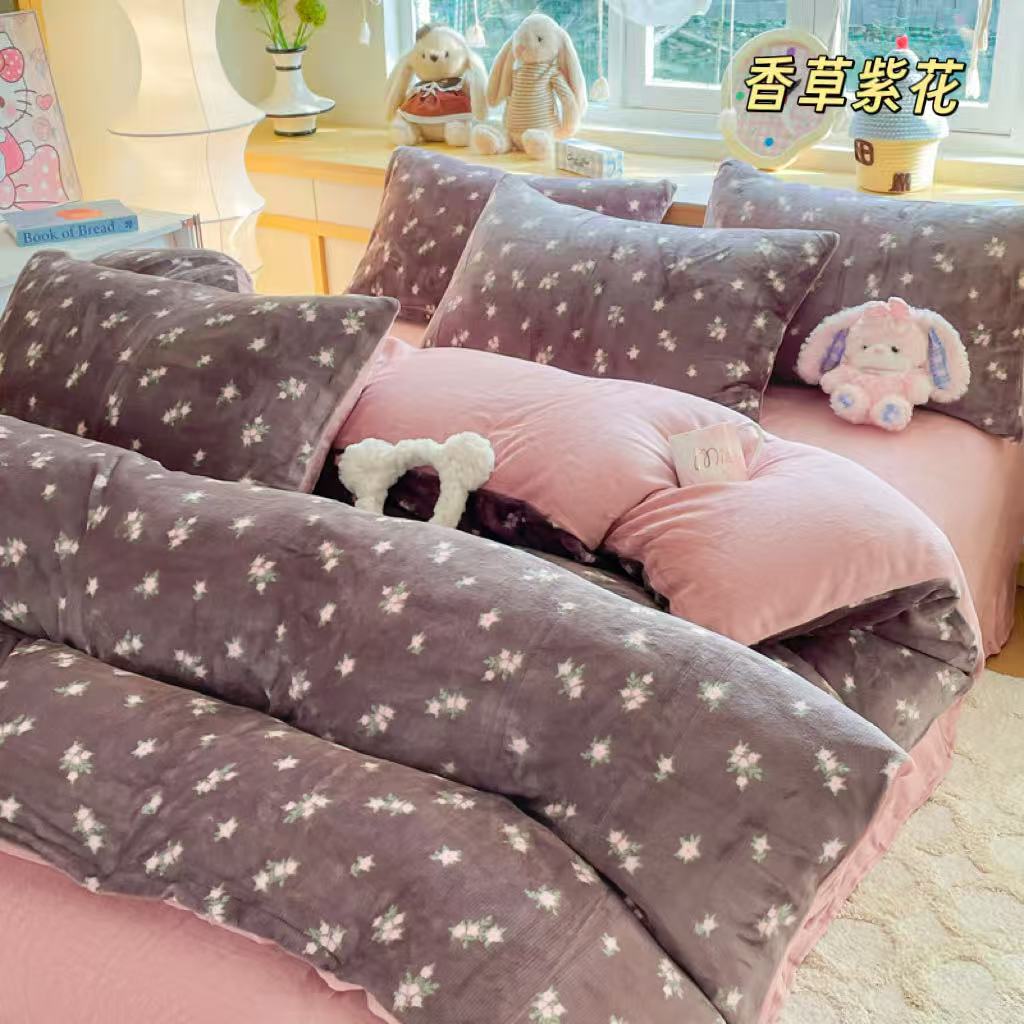 一比一 2025新款双面牛奶绒四件套 香草紫花