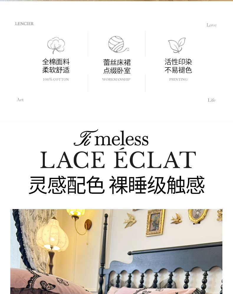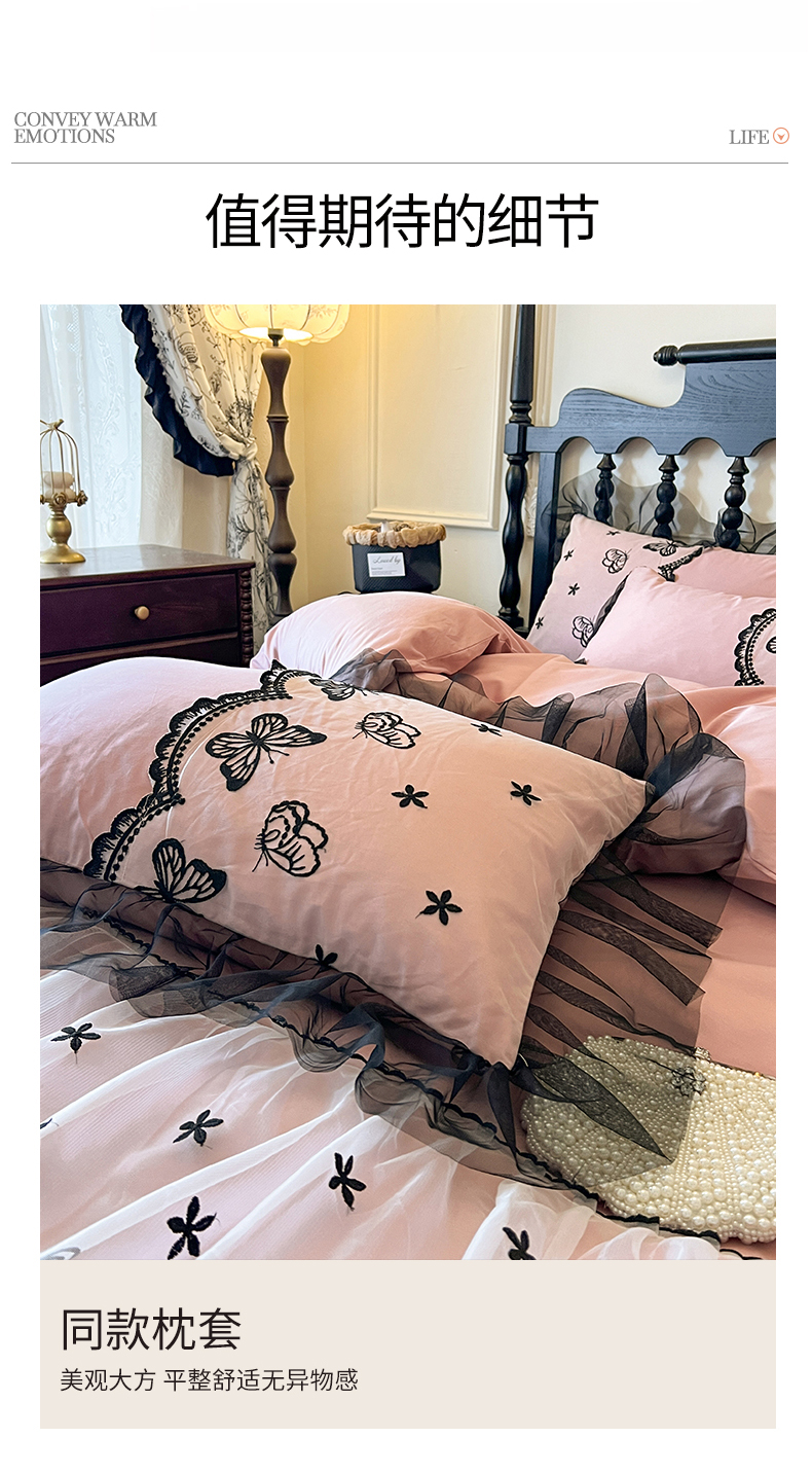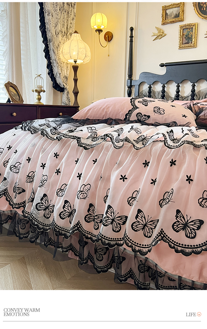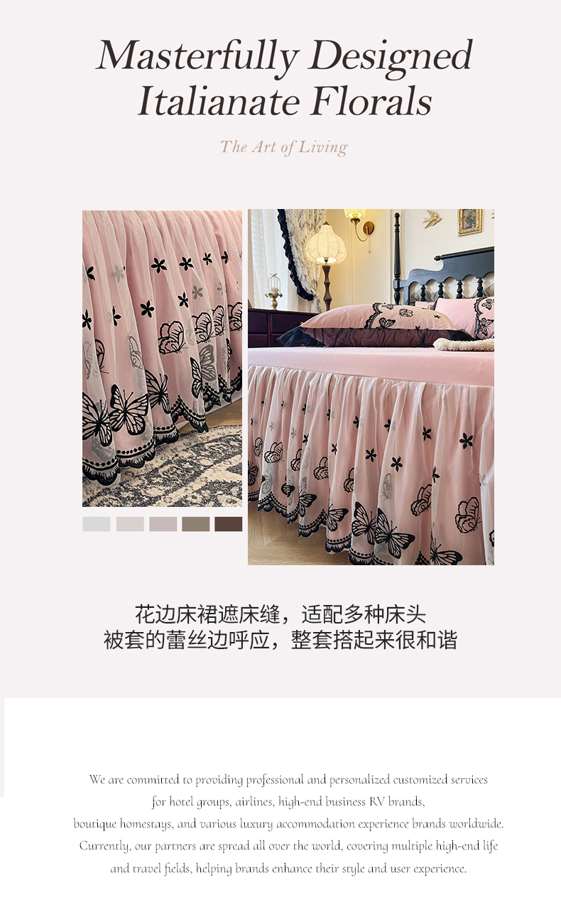 当前位置: 91家纺网 > 商品网购 > 床品套件 > 四件套 > 全棉普通四件套 > 网红馆(ck家纺) 2025新款全棉纯棉蕾丝边床裙款四件套-梦蝶轻舞 梦蝶轻舞-豆沙
