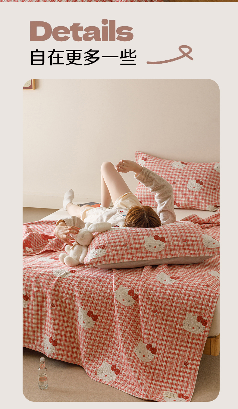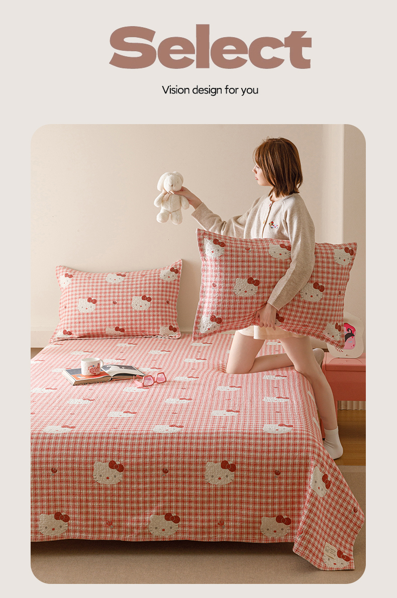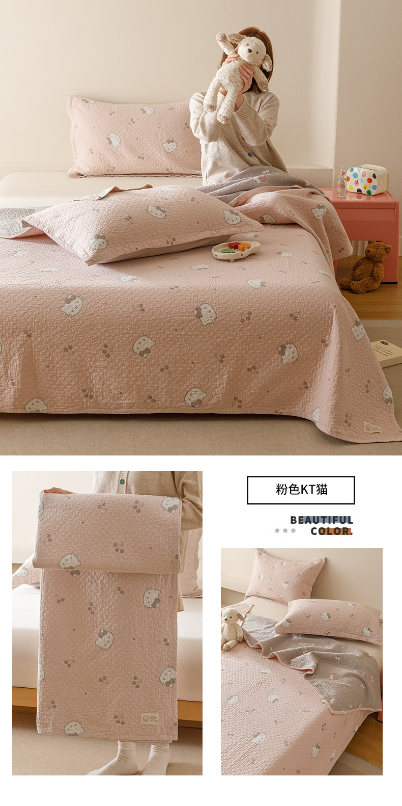 (总)麻依 2025新款安心棉床盖三件全棉四层纱布床单,粉色KT猫,花园小兔,凯蒂的快乐,可爱鸭鸭,可可猫咪-奶茶,可可猫咪-深咖,蓝色熊猫,团团KT,小熊格格,心心领结,欣欣樱桃,雪漫,樱桃兔猫,组合