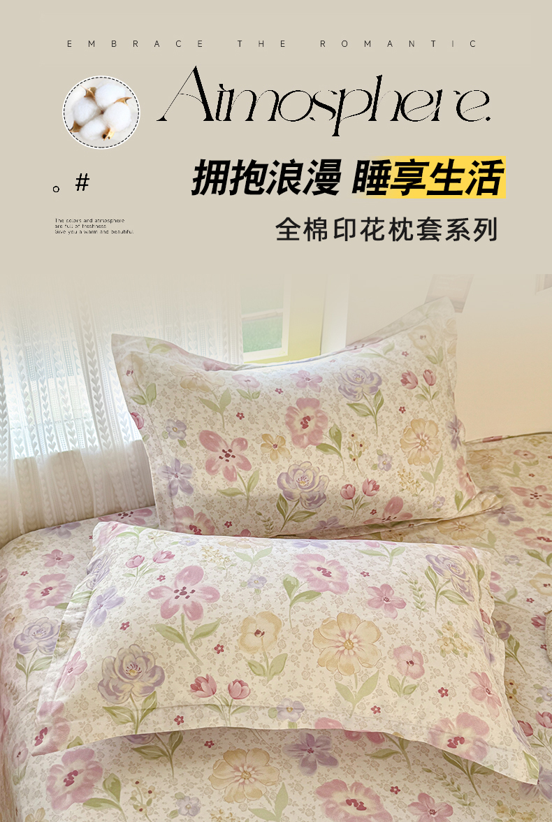 商品名称:尚帛 2026新款全棉品质喷气印花爆款四件套 多规格套件 单品系列-单枕套 甜心花朵