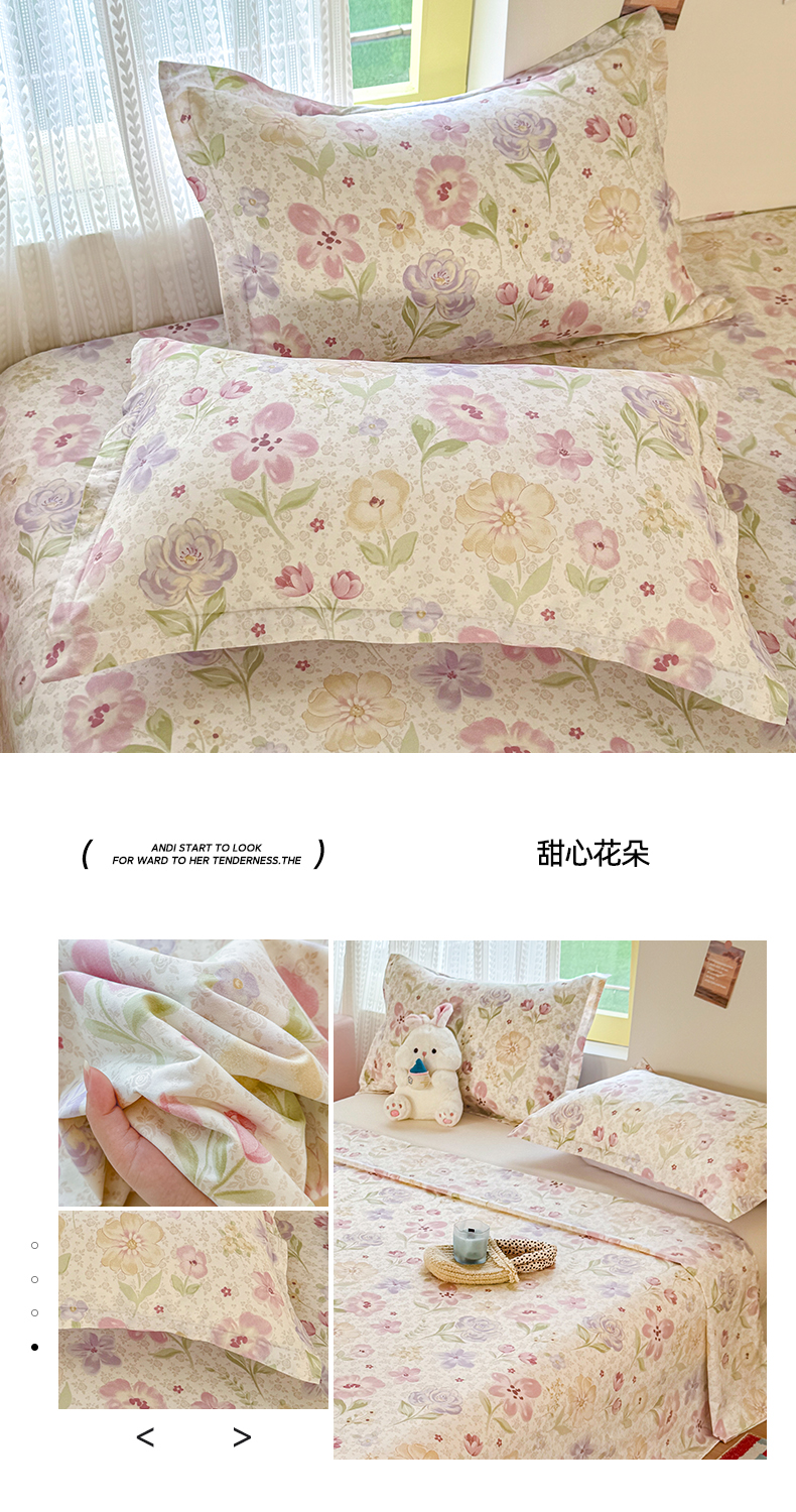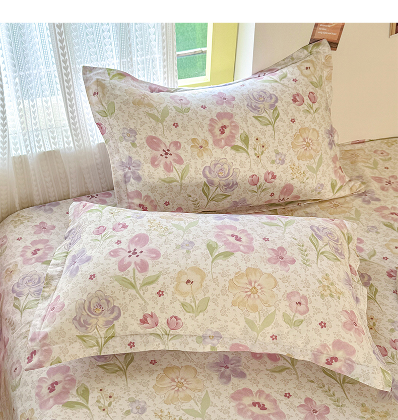 (总)尚帛 2025新款高支高密全棉小清新碎花少女心枕套系带系列四件套--提供买家秀,花柔香,墨染芳华,暖阳小花,蔷薇织梦,温柔花海,芋泥樱桃