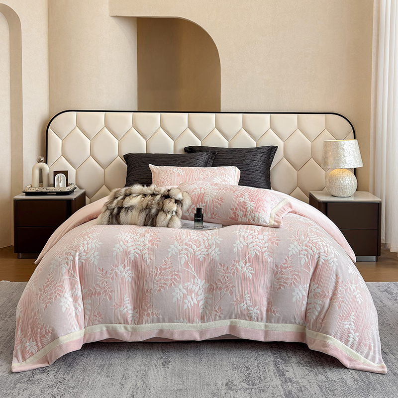 商品名称:若未家居 LOVEWE HOUSE 2025新款220高克重牛奶绒色烂双拼四件套 叶飘清秋 粉红