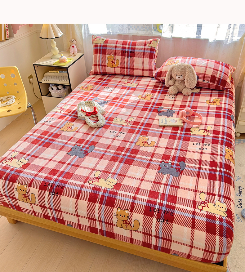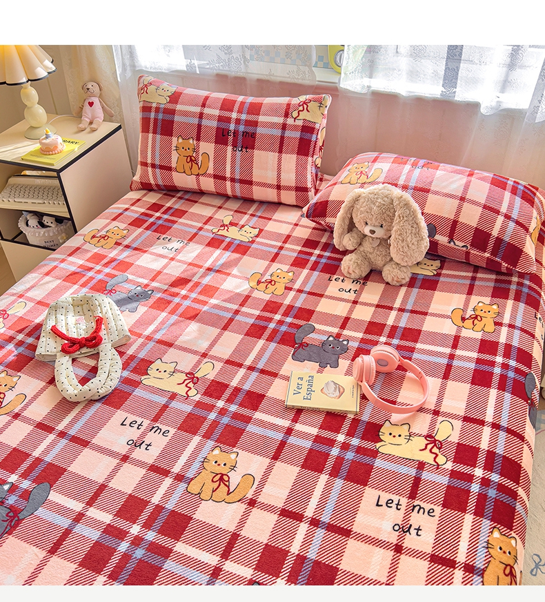 灿哈家纺 2025新款牛奶绒印花床笠单品床笠床笠单件床笠三件套 可爱猫咪