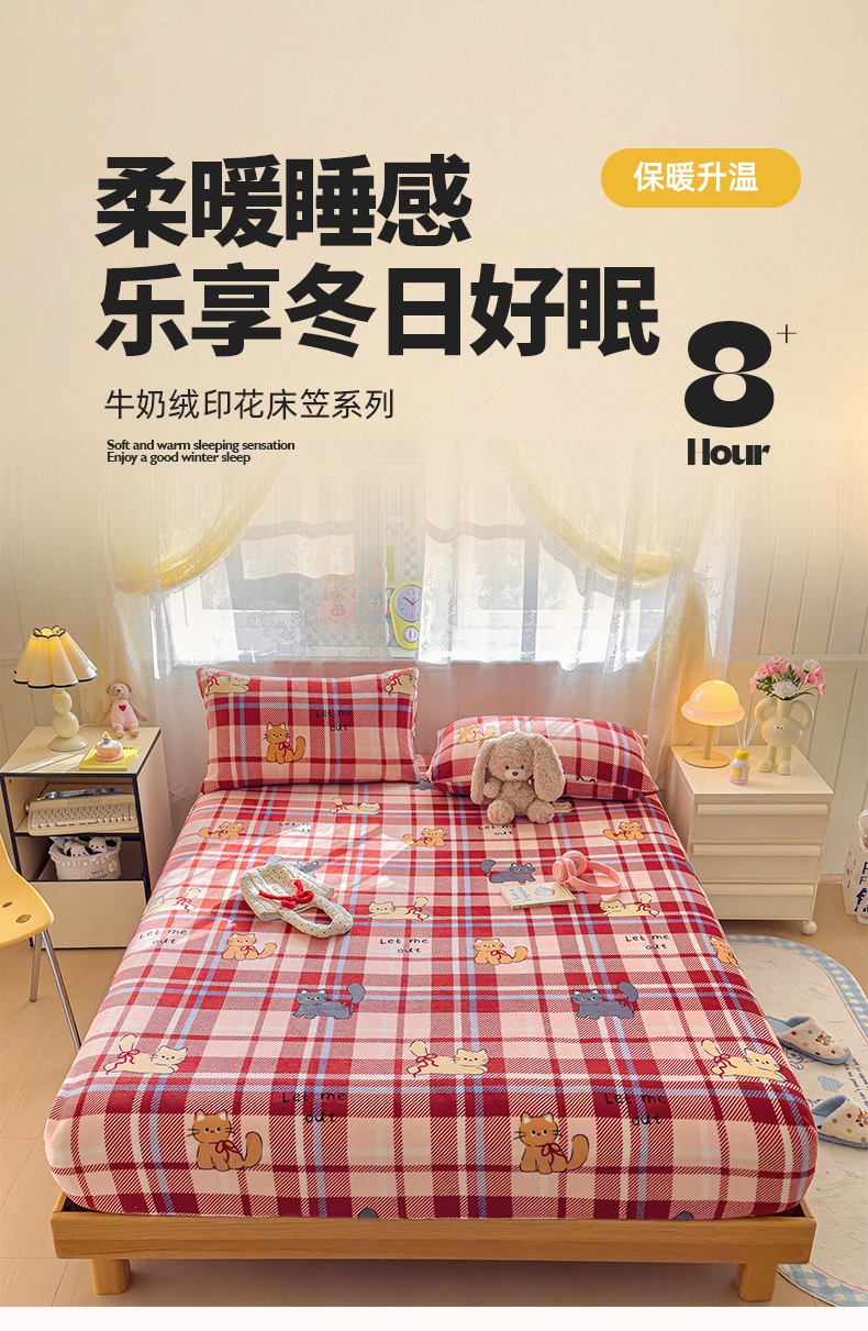(总)灿哈家纺 2025新款牛奶绒印花床笠单品床笠床笠单件床笠三件套,组合图仅做展示不可下单,斑点小狗,草莓粉,高贵紫,格子猫,格子猫-咖色,格子猫-蓝色,哈基米,海水蓝,后花园,酒红,咖啡熊,咖色,可爱猫咪,深粉,小宝贝,小乖乖,仔仔乐园