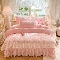商品名称:漫布云2025秋冬新款11斤230g全消光牛奶绒夹棉床盖款四件套纯色蕾丝花边刺绣床裙款床盖 花韵-樱花粉
