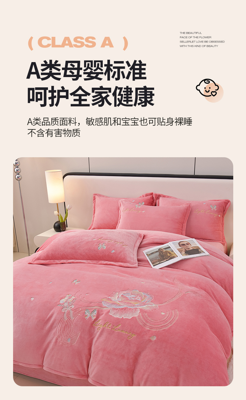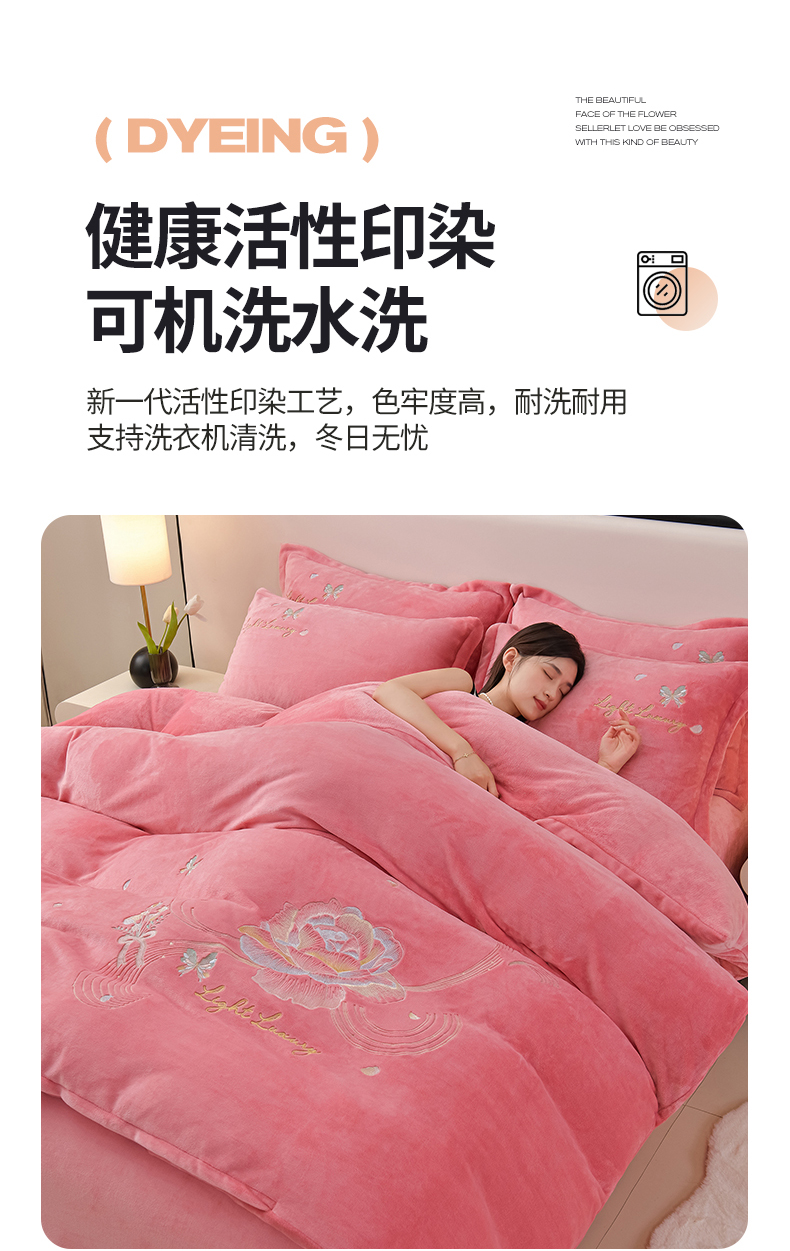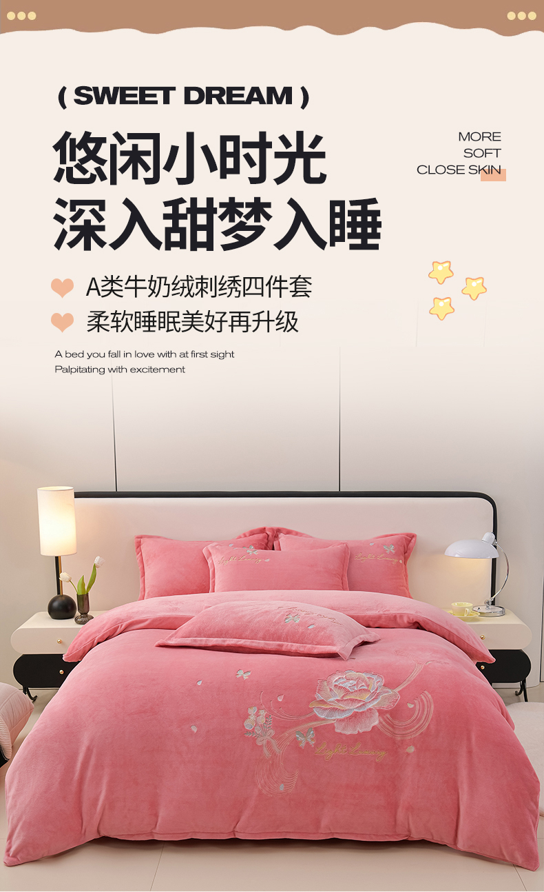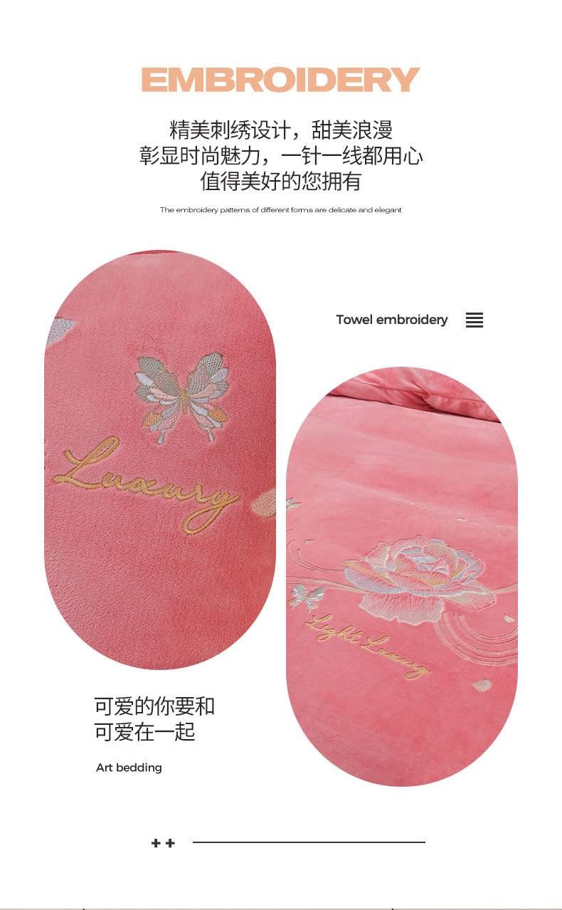 绒小宣 2025新款A类牛奶绒刺绣四件套-蝶恋花 芍药粉