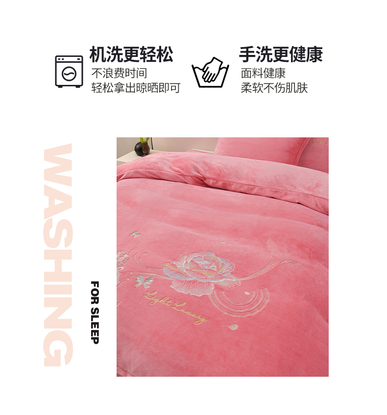 商品名称:绒小宣 2025新款A类牛奶绒刺绣四件套-蝶恋花 芍药粉