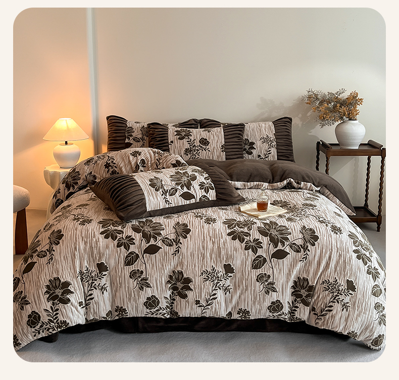 (总)子曰 2025新款雕花加厚牛奶绒宽边工艺款四件套-小香风,小香风-咖,小香风-粉,小香风-绿,小香风-米白,小香风-紫
